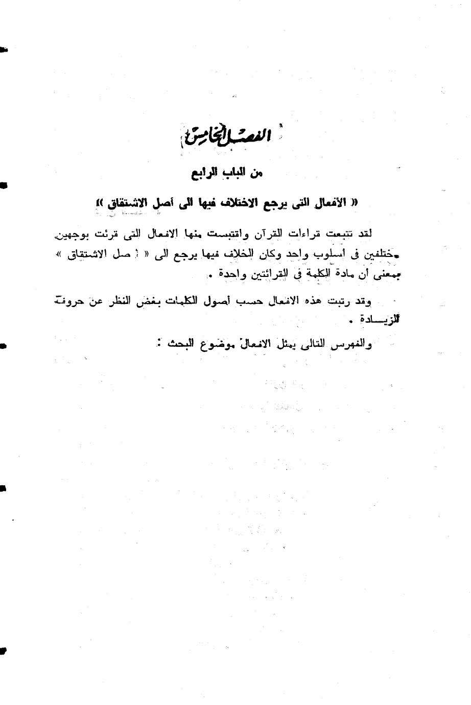الفصل الخامس من الباب الرابع «الأفعال التي يرجع الاختلاف فيها الى أصل الاشتقاق»
