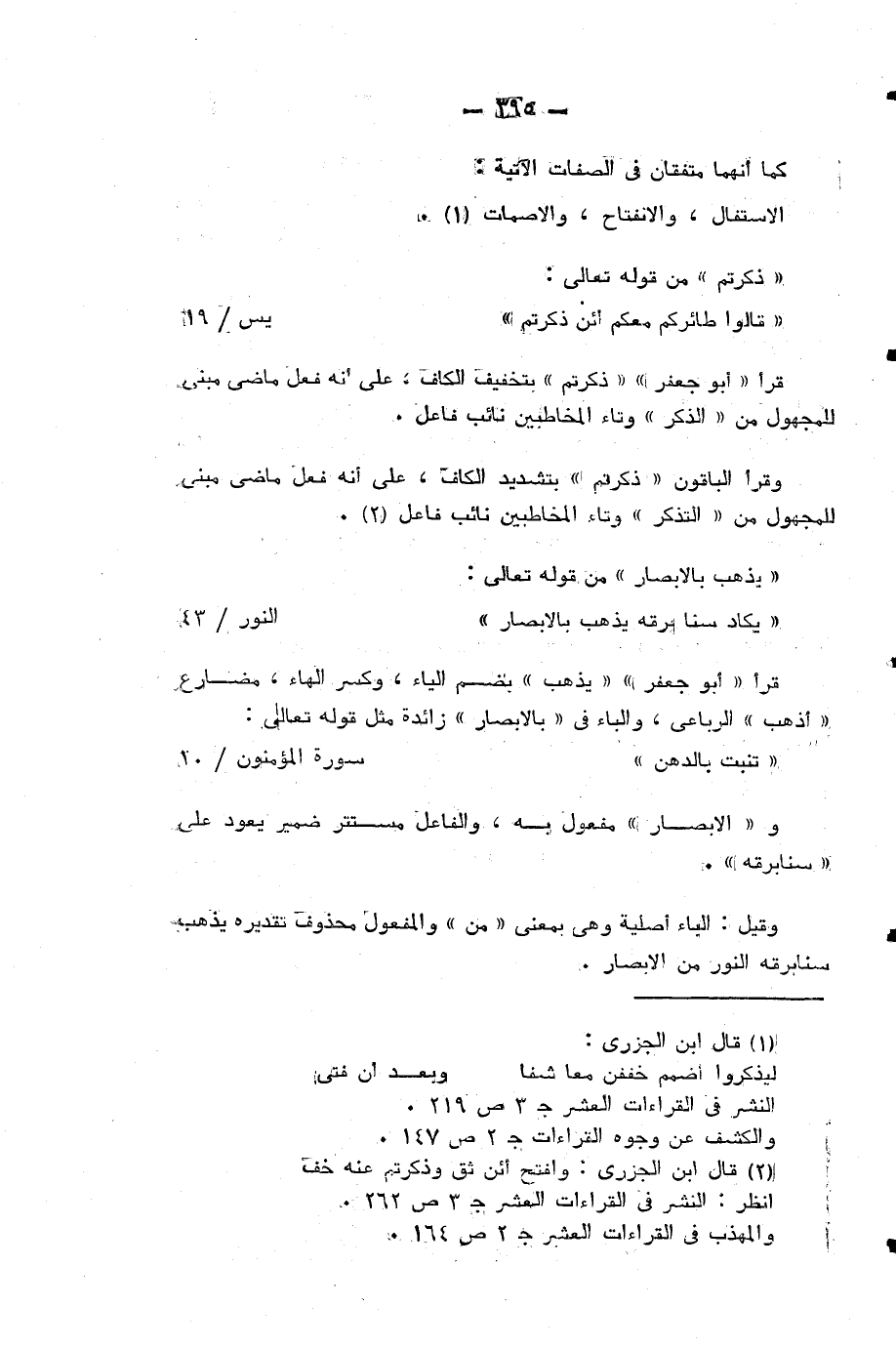وقرأ الباقون «ذكرتم» بتشديد الكاف، على أنه فعل ماض مبني للمجهول من «التذكر» وتاء المخاطبين نائب فاعل (¬3).