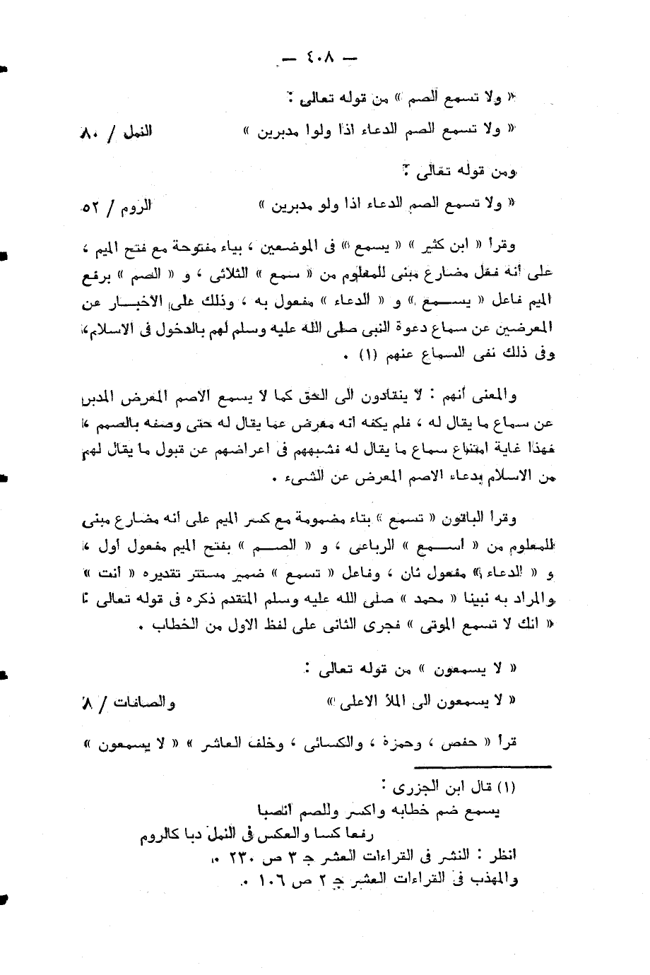 ومن قوله تعالى: وَلا تُسْمِعُ الصُّمَّ الدُّعاءَ إِذا وَلَّوْا مُدْبِرِينَ (¬2).