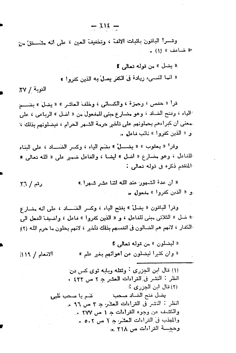 والمهذب في القراءات العشر ج 1 ص 502 وحجة القراءات ص 318.