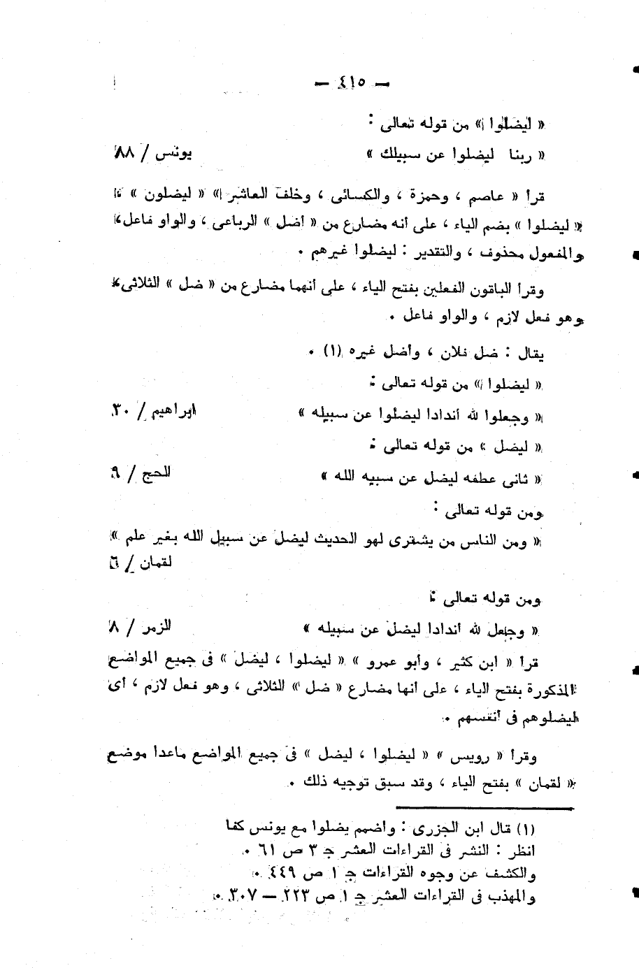 (¬2) قال ابن الجزرى: واضمم يضلوا مع يونس كفا انظر: النشر في القراءات العشر ج 3 ص 61.