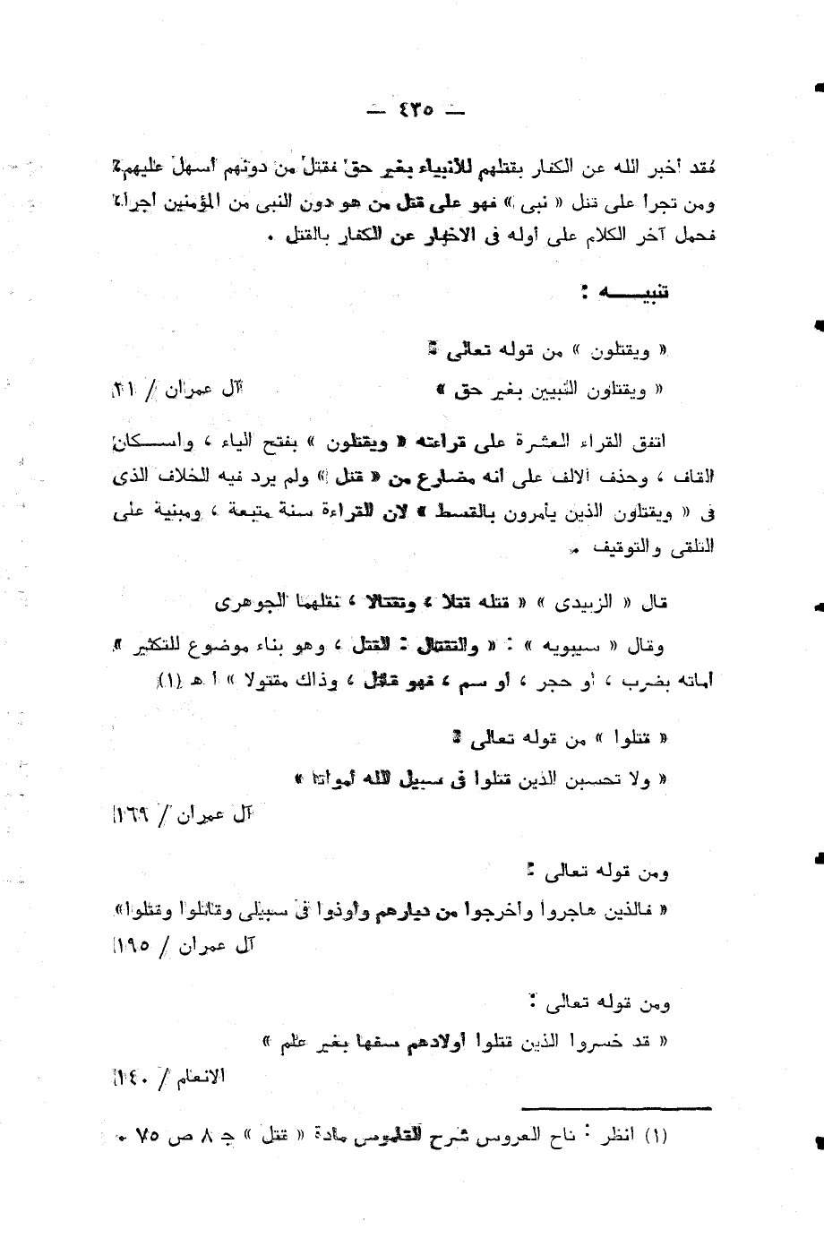 (¬2) انظر: تاج العروس شرح القاموس مادة «قتل» ج 8 ص 75.