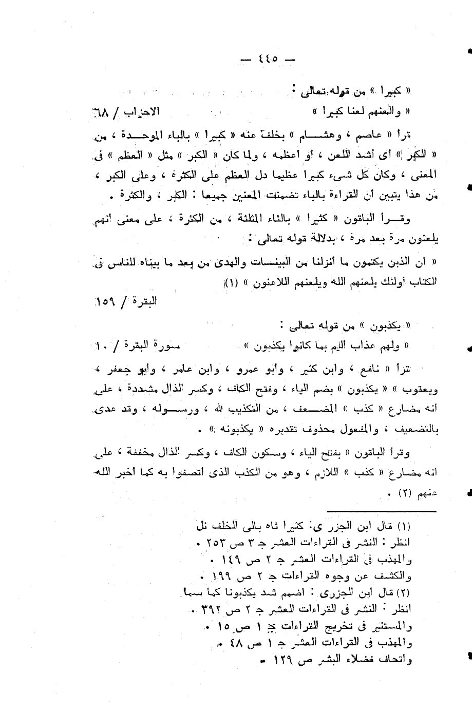 (¬1) قال ابن الجزرى: كثيرا ثاه بالي الخلف نل انظر: النشر في القراءات العشر ج ص 253.