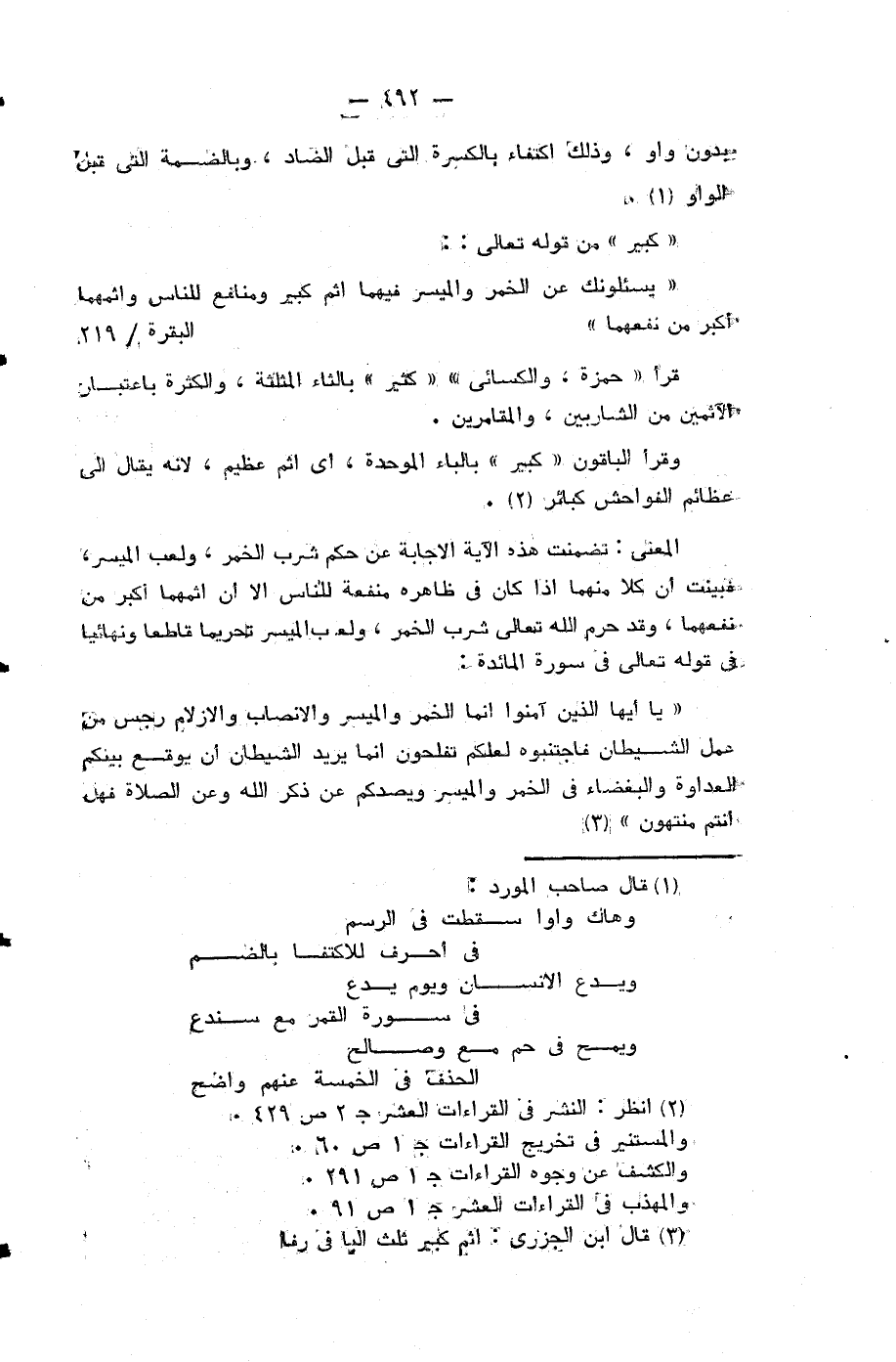 «كبير» من قوله تعالى: يَسْئَلُونَكَ عَنِ الْخَمْرِ وَالْمَيْسِرِ قُلْ فِيهِما إِثْمٌ كَبِيرٌ وَمَنافِعُ لِلنَّاسِ وَإِثْمُهُما أَكْبَرُ مِنْ نَفْعِهِما (¬2).