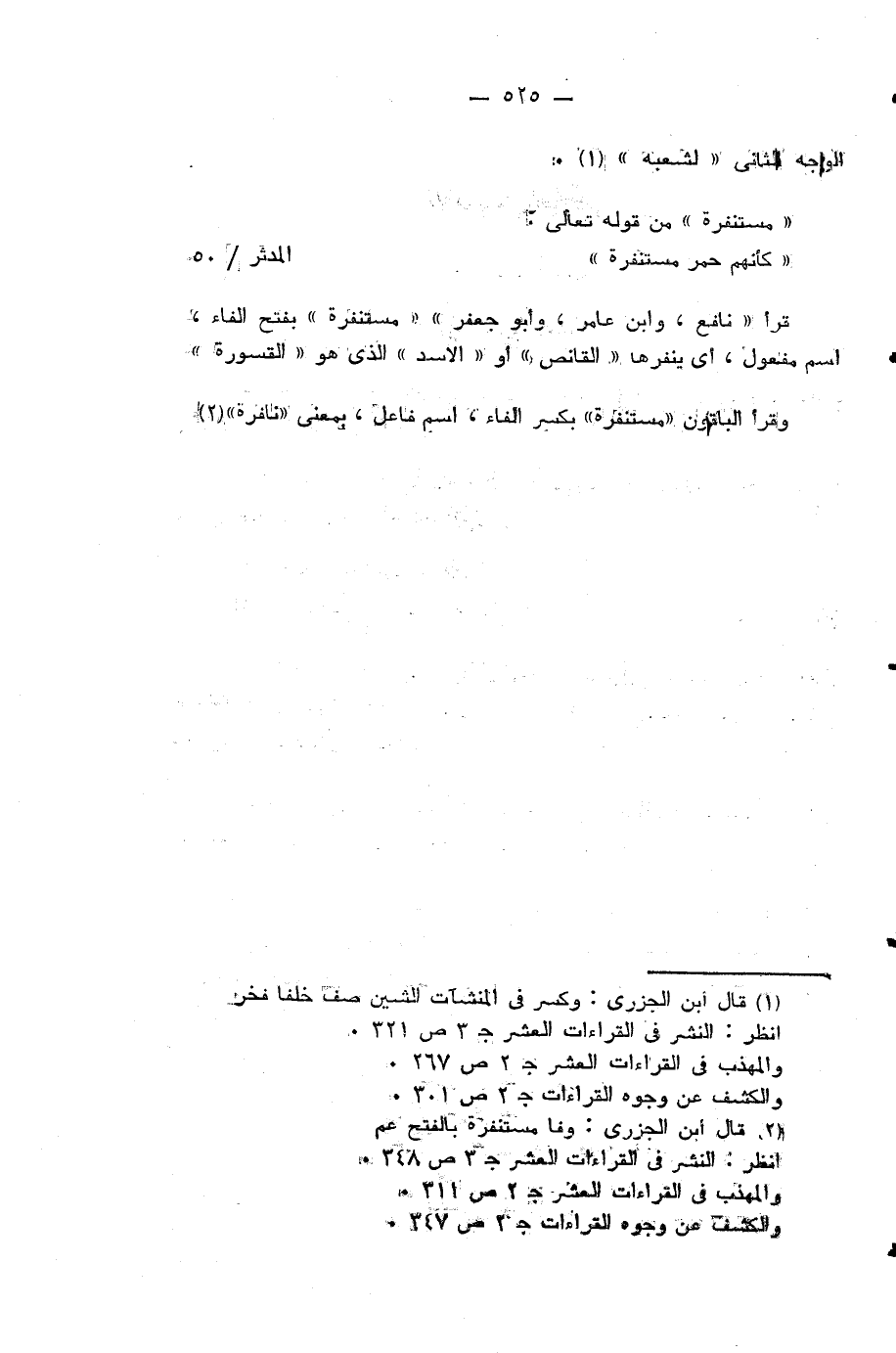 (¬3) قال ابن الجزرى: وفا مستنفرة بالفتح عم انظر: النشر في القراءات العشر ج 3 ص 348 والمهذب في القراءات العشر ج 2 ص 311.