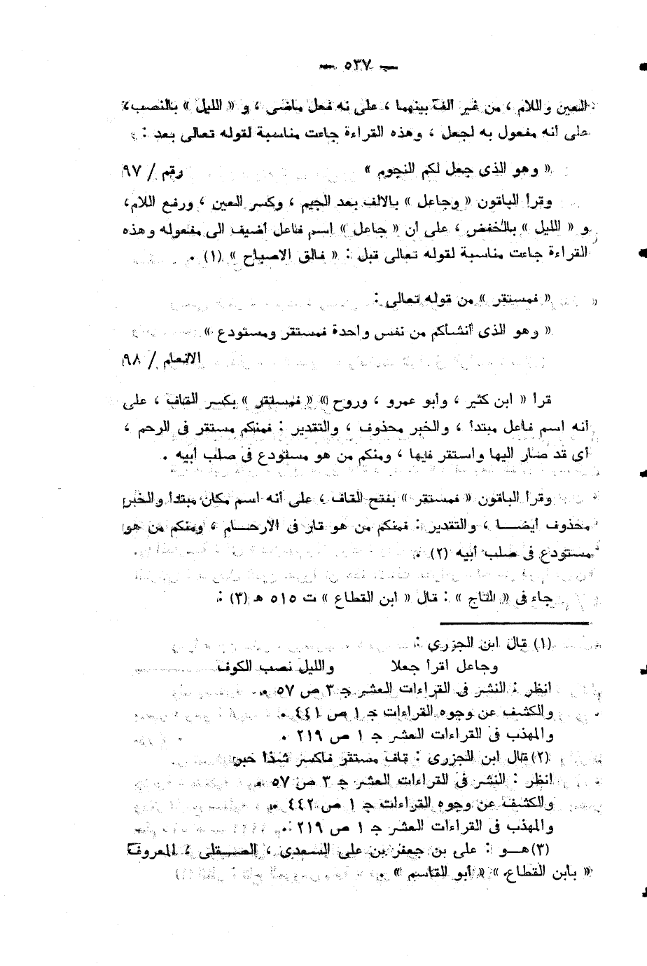 (¬4) قال ابن الجزرى: قاف مستقر فاكسر شذا حبر انظر: النشر في القراءات العشر ج 3 ص 57 والكشف عن وجوه القراءات ج 1 ص 442.