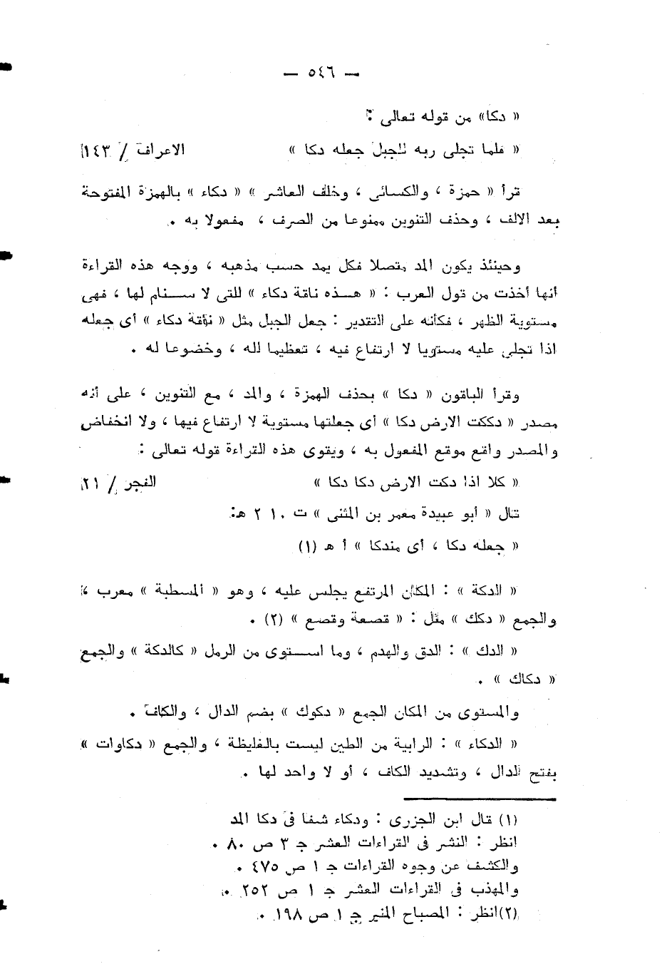 (¬3) قال ابن الجزرى: ودكاء شفا في دكا المد انظر: النشر في القراءات العشر ج 3 ص 80 والكشف عن وجوه القراءات ج 1 ص 475.