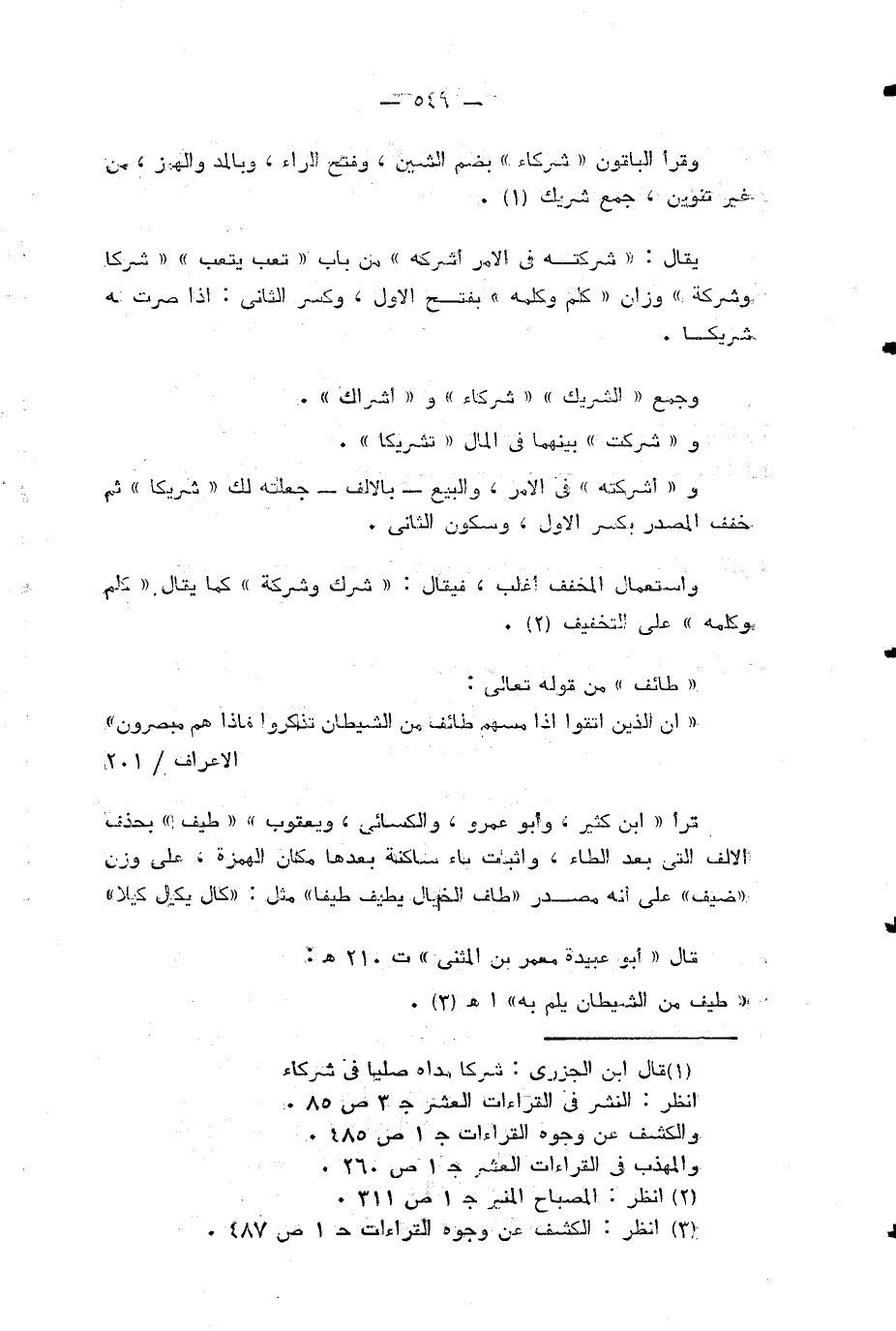 (¬1) قال ابن الجزرى: شركا مداه صليا في شركاء انظر: النشر في القراءات العشر ج 3 ص 85 والكشف عن وجوه القراءات ج 1 ص 485.