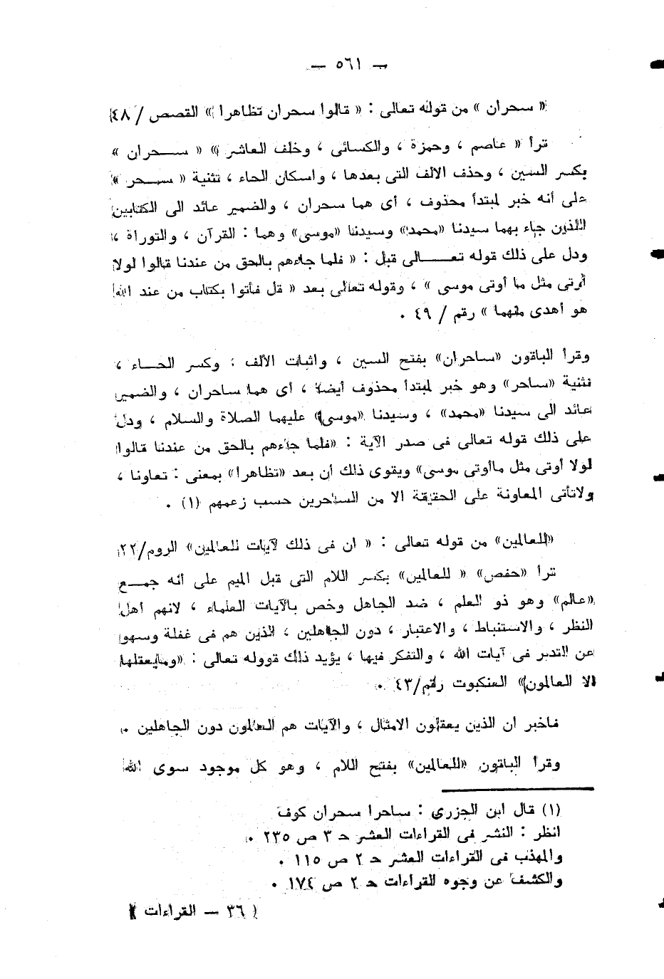 (¬1) قال ابن الجزرى: ساحرا سحران كوف انظر: النشر في القراءات العشر ح 3 ص 235.