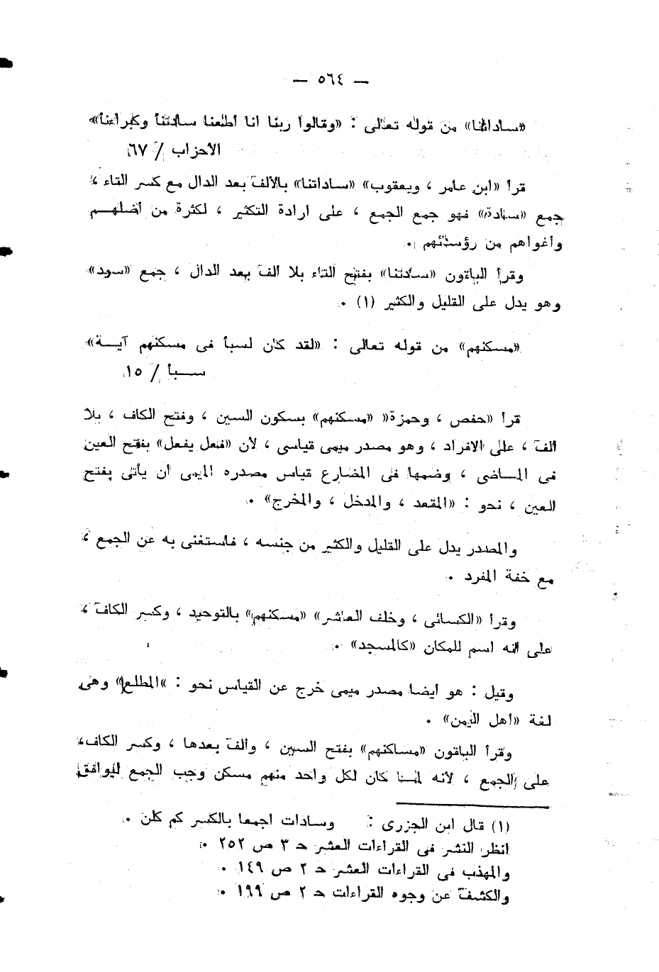 (¬2) قال ابن الجزرى: وسادات اجمعا بالكسر كم كان.