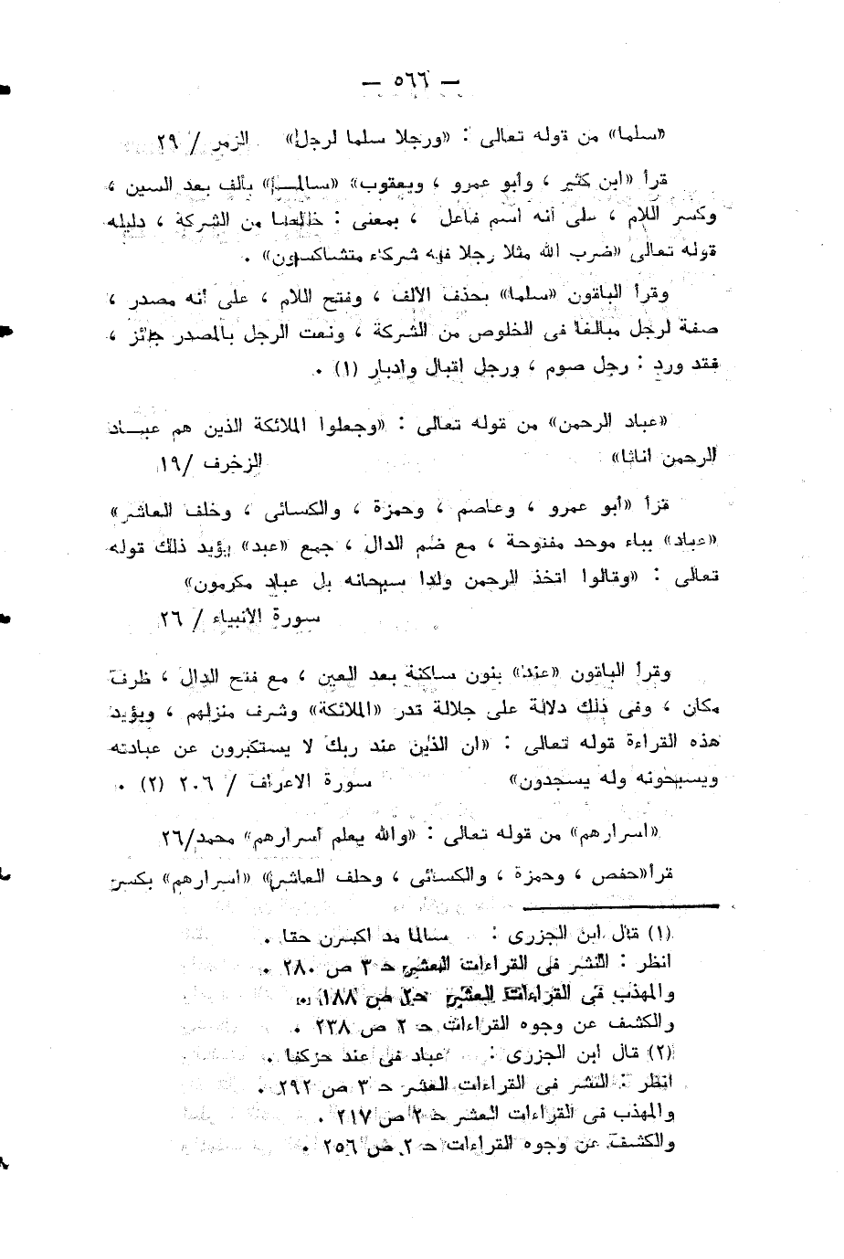 قرأ «ابن كثير، وأبو عمرو، ويعقوب» «سالما» بألف بعد السين، وكسر اللام، على أنه اسم فاعل، بمعنى: خالصا من الشركة، دليله قوله تعالى ضَرَبَ اللَّهُ مَثَلًا رَجُلًا فِيهِ شُرَكاءُ مُتَشاكِسُونَ وقرأ الباقون «سلما» بحذف الألف، وفتح اللام، على أنه مصدر، صفة لرجل مبالغا في الخلوص من الشركة، ونعت الرجل بالمصدر جائز، فقد ورد: رجل صوم، ورجل إقبال وادبار (¬2).
