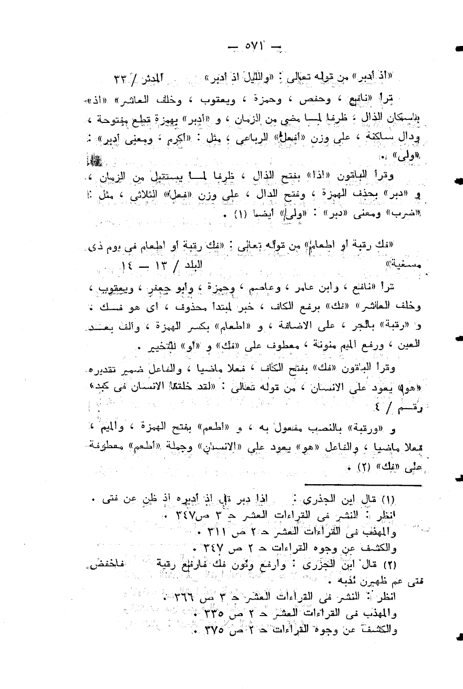 (¬2) قال ابن الجزرى: اذا دبر قل اذ أدبره اذ ظن عن فتى.