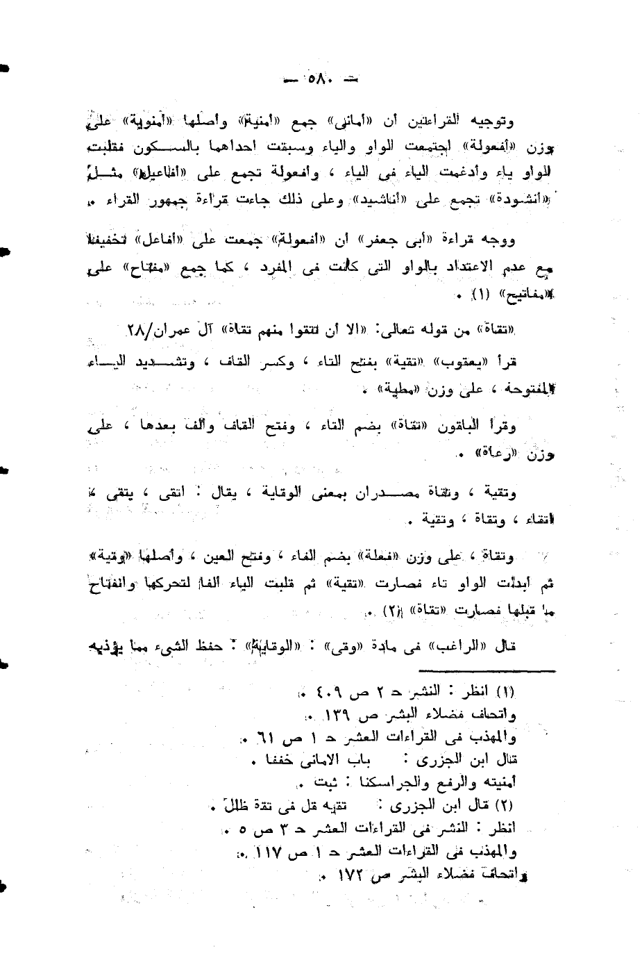 وتقاة، على وزن «فعلة» بضم الفاء، وفتح العين، وأصلها «وقية» ثم أبدلت الواو تاء فصارت «تقية» ثم قلبت الياء ألفا لتحركها وانفتاح ما قبلها فصارت «تقاة» (¬3).