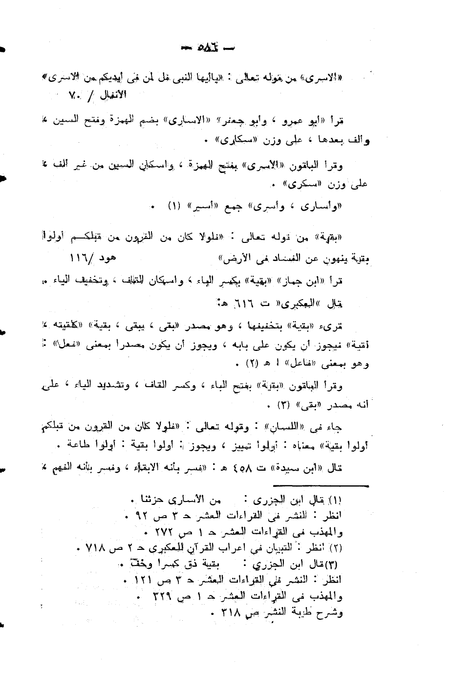 (¬2) قال ابن الجزرى: من الأسارى حزثنا انظر: النشر في القراءات العشر ح 3 ص 92.