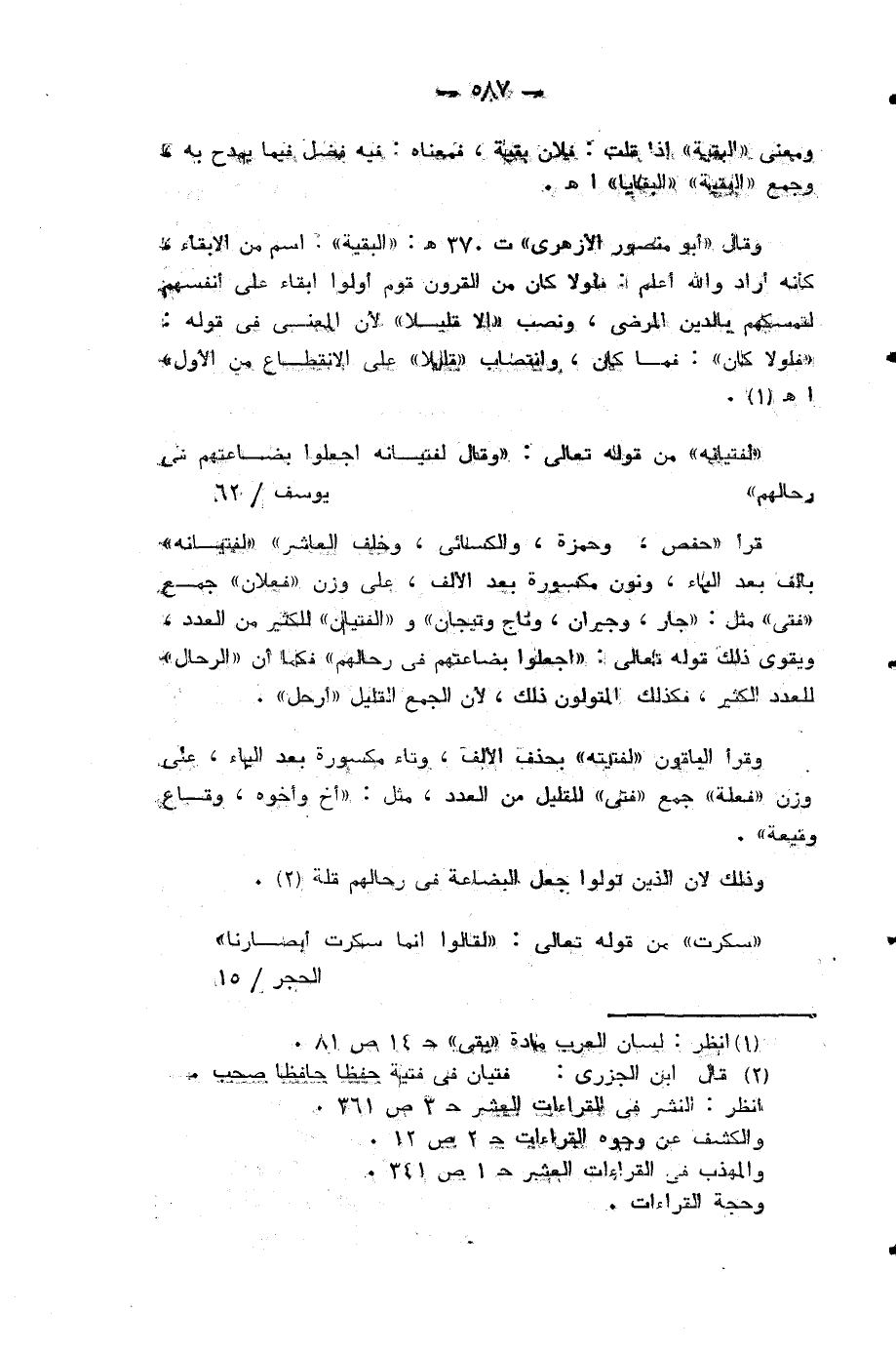 (¬1) انظر: لسان العرب مادة «بقى» ح 14 ص 81.