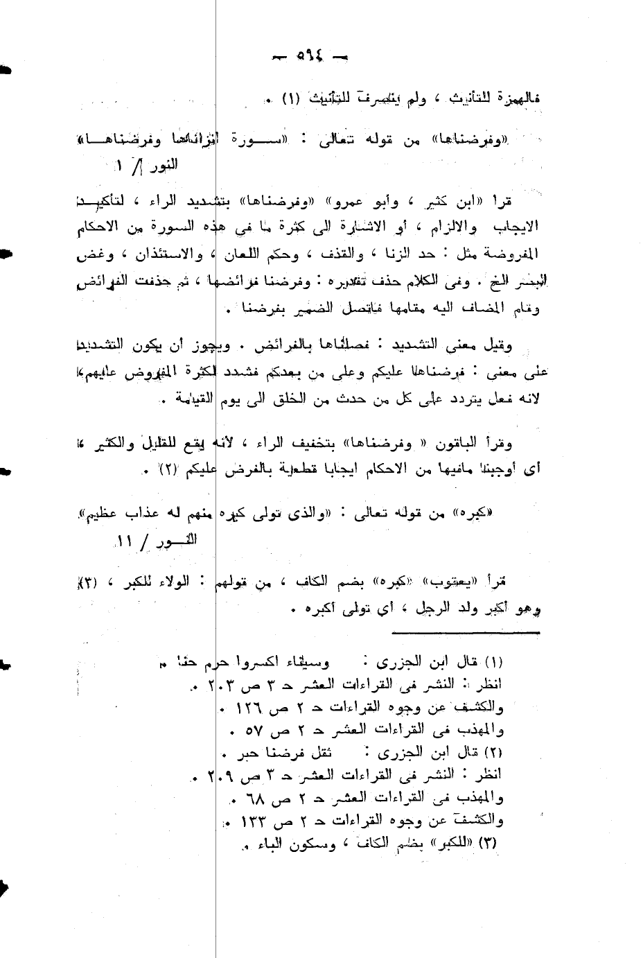 قرأ «ابن كثير، وأبو عمرو» «وفرضناها» بتشديد الراء، لتأكيد الايجاب والالزام، أو الاشارة الى كثرة ما في هذه السورة من الاحكام المفروضة مثل: حد الزنا، والقذف، وحكم اللعان، والاستئذان، وغض البصر الخ.