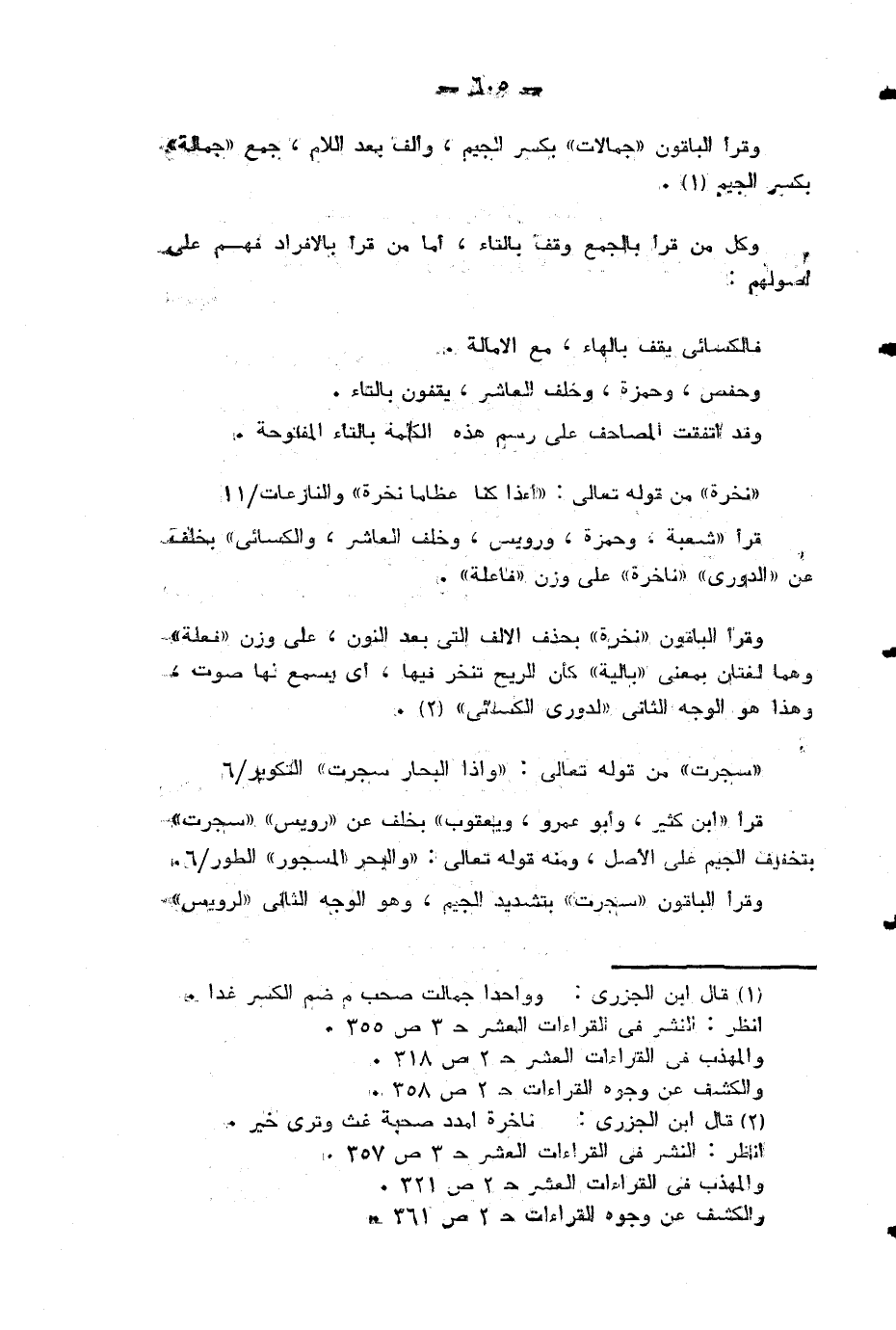 (¬1) قال ابن الجزرى: وواحدا جمالت صحب م ضم الكسر غدا.