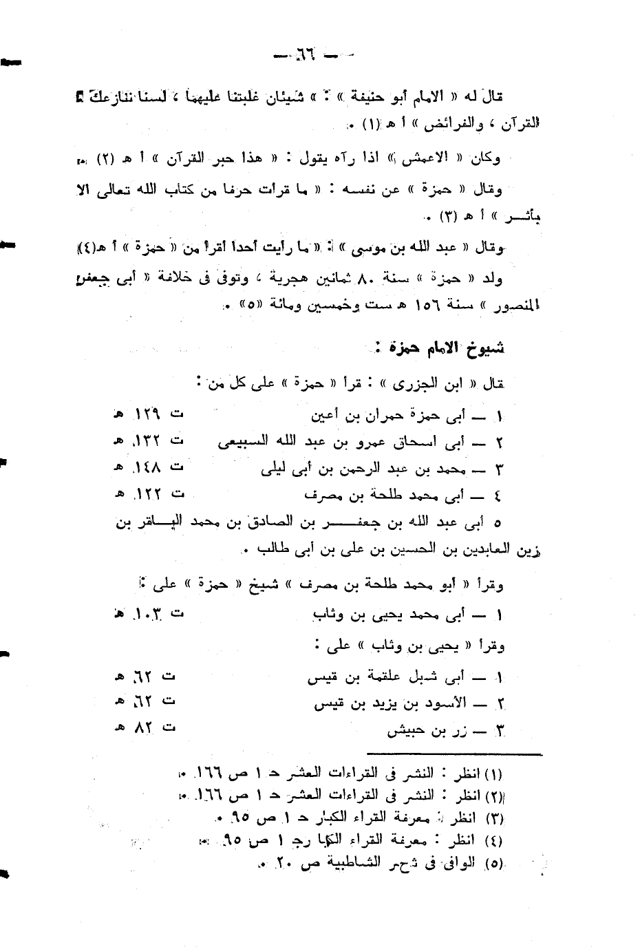 قال «ابن الجزري»: قرأ «حمزة» على كل من: