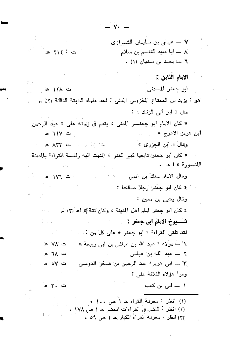 ابو جعفر المدني ت 128 هـ هو: يزيد بن القعقاع المخزومي المدني: أحد علماء الطبقة الثالثة (¬2).