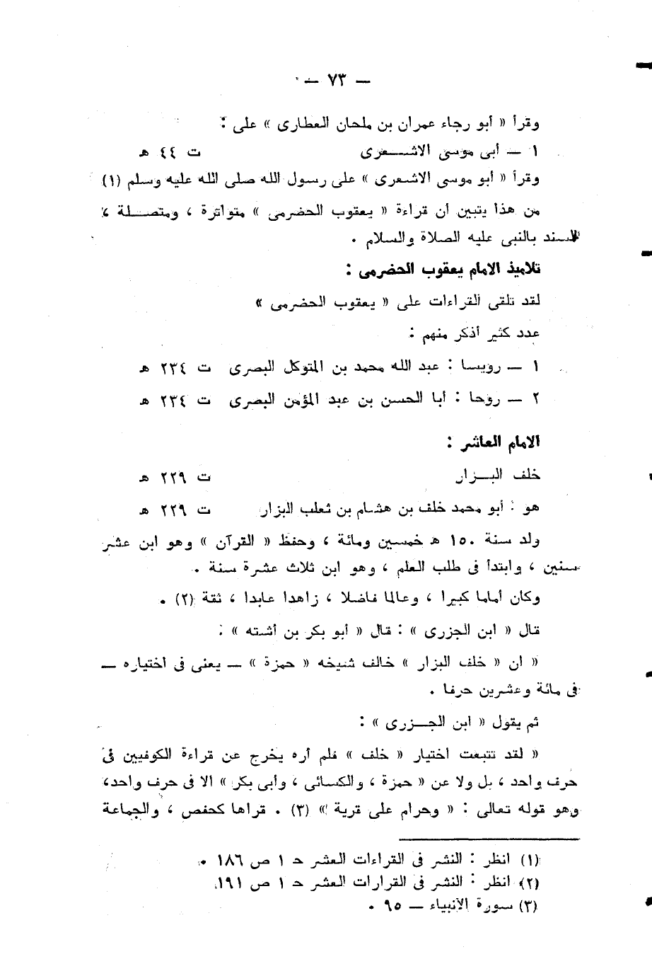 1 - ابي موسى الاشعري ت 44 هـ وقرأ «ابو موسى الاشعري» على رسول الله صلى الله عليه وسلم (¬1) من هذا يتبين ان قراءة «يعقوب الحضرمي» متواترة، ومتصلة السند بالنبي عليه الصلاة والسلام.