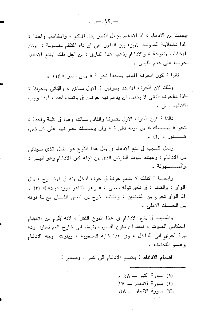 والسبب في منع الادغام في هذا النوع الثقل، لانه يلزم من الادغام انعكاس الصوت، فبعد ان يكون الصوت منبعثا الى خارج الفم نحاول رده مرة اخرى الى الداخل، وفي هذا غاية الصعوبة، ويفوت وجه الادغام وهو التخفيف.