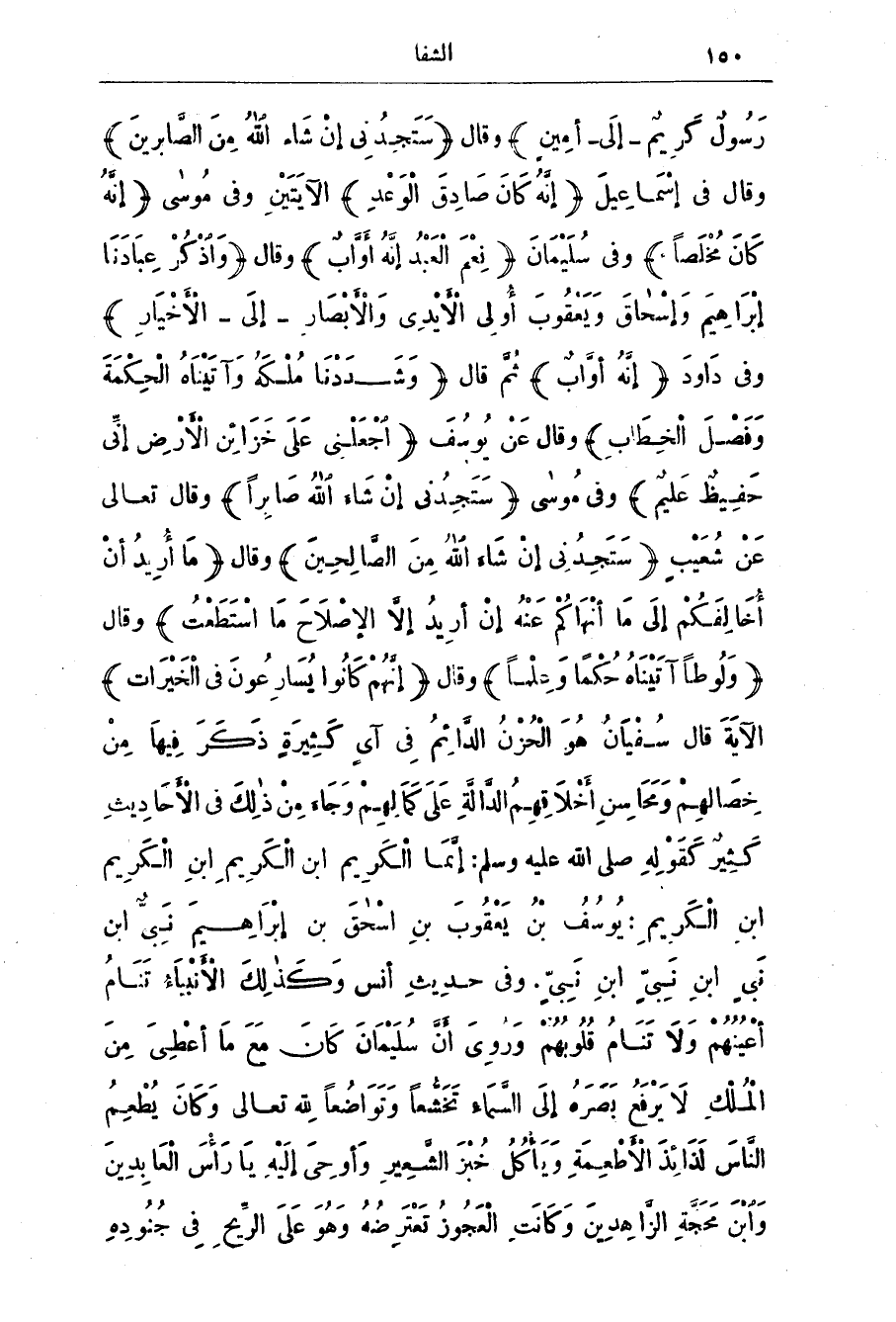 رَسُولٌ كَرِيمٌ - إِلَى - أمين) وَقَالَ (سَتَجِدُنِي إِنْ شَاءَ اللَّهُ مِنَ الصَّابِرِينَ) وَقَالَ فِي إِسْمَاعِيلَ (إِنَّهُ كَانَ صَادِقَ الْوَعْدِ) الآيَتَيْنِ وَفِي مُوسَى (إِنَّهُ كَانَ مُخْلَصًا) وَفِي سُلَيْمَانَ (نِعْمَ الْعَبْدُ إِنَّهُ أَوَّابٌ) وَقَالَ (وَاذْكُرْ عِبَادَنَا إِبْرَاهِيمَ وَإِسْحَاقَ وَيَعْقُوبَ أُولِي الأَيْدِي وَالأَبْصَارِ - إلى - الأخيار) وفى داود (إنه أواب) ثُمَّ قَالَ (وَشَدَدْنَا مُلْكَهُ وَآتَيْنَاهُ الْحِكْمَةَ وَفَصْلَ الخطاب) وَقَالَ عَنْ يُوسُفَ (اجْعَلْنِي عَلَى خَزَائِنِ الأَرْضِ إِنِّي حَفِيظٌ عليم) وَفِي مُوسَى (سَتَجِدُنِي إِنْ شَاءَ اللَّهُ صَابِرًا) وَقَالَ تَعَالَى عَنْ شَعَيْبٍ (سَتَجِدُنِي إِنْ شَاءَ الله من الصحالين) وقال (ما أُرِيدُ أَنْ أُخَالِفَكُمْ إِلَى مَا أَنْهَاكُمْ عَنْهُ إِنْ أُرِيدُ إِلا الإِصْلاحَ مَا استطعت) وَقَالَ (وَلُوطًا آتَيْنَاهُ حكما وعلما) وَقَالَ (إِنَّهُمْ كَانُوا يُسَارِعُونَ فِي الْخَيْرَاتِ) الآية قَالَ سُفْيَانُ هُوَ الْحُزْنُ الدَّائِمُ فِي آيٍ كَثِيرَةٍ ذَكَرَ فِيهَا مِنْ خِصَالِهِمْ وَمَحَاسِنِ أخْلَاقِهِمِ الدَّالَّةِ عَلَى كَمَالِهِمْ وَجَاءَ مِنْ ذَلِكَ فِي الْأَحَادِيثِ كَثِيرٌ كَقَوْلِهِ صَلَّى اللَّهُ عَلَيْهِ وَسَلَّمَ: إِنَّمَا الْكَرِيمُ ابْنُ الْكَرِيمِ ابْنِ الْكَرِيمِ ابْنِ الكريم: يُوسُفُ بْنُ يَعْقُوبَ بن اسحق بْنِ إِبْرَاهِيمَ نَبِيُّ ابْنُ نَبِيِّ ابْنِ نَبِيٍّ ابْنِ نَبِيٍّ.