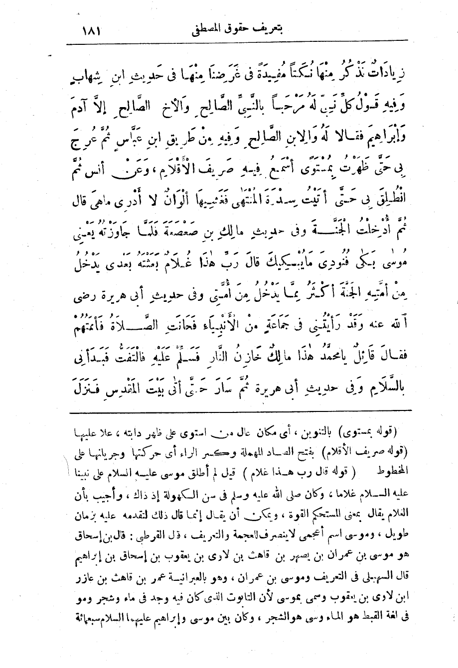 (قوله بمستوى) بالتنوين، أي مكان عال من استوى على ظهر دابته، علا عليها (قوله صريف الأقلام) بفتح الصاد المهملة وكسر الراء أي حركتها وجريانها على المخطوط (قوله قَالَ رَبِّ هَذَا غلام) قيل لم أطلق موسى عليه السلام على نبينا عليه السلام غلاما، وكان صلى الله عليه وسلم في سن الكهولة إذ ذاك، وأجيب بأن الغلام يقال بمعنى المستحكم القوة، ويمكن أن يقال إنَّمَا قَال ذَلِك لتقدمه عليه بزمان