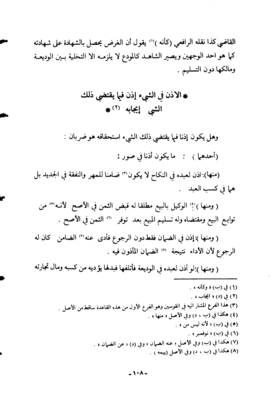 (أَحَدُهُمَا) : مَا يَكُونُ إذْنًا فِي صُوَرٍ: