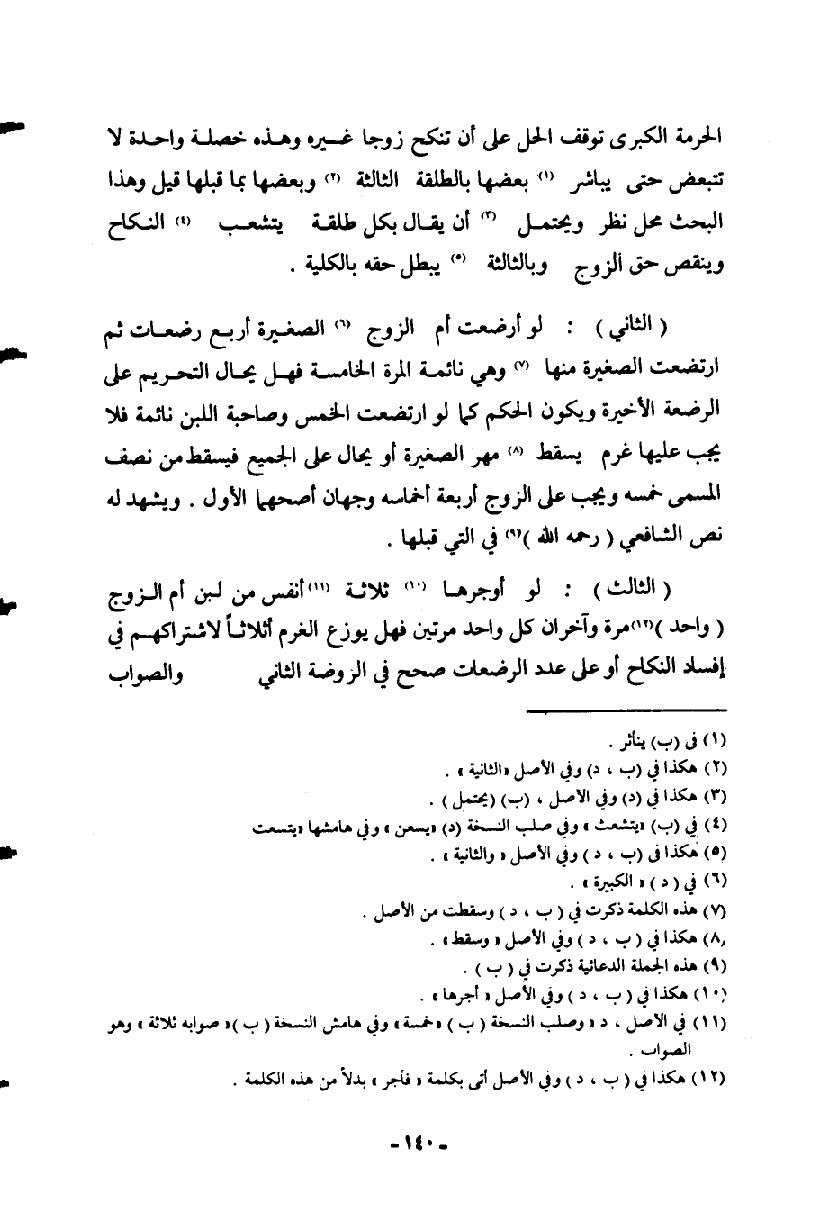 الْحُرْمَةِ الْكُبْرَى تَوَقُّفُ الْحِلِّ عَلَى أَنْ تَنْكِحَ زَوْجًا غَيْرَهُ وَهَذِهِ خَصْلَةٌ وَاحِدَةٌ لَا تَتَبَعَّضُ حَتَّى يُبَاشِرَ بَعْضَهَا بِالطَّلْقَةِ الثَّالِثَةِ وَبَعْضَهَا بِمَا قَبْلَهَا. قِيلَ وَهَذَا الْبَحْثُ مَحَلُّ نَظَرٍ وَيُحْتَمَلُ أَنْ يُقَالَ بِكُلِّ طَلْقَةٍ يَتَشَعَّبُ النِّكَاحُ وَيَنْقُصُ حَقُّ الزَّوْجِ وَبِالثَّالِثَةِ يَبْطُلُ حَقُّهُ بِالْكُلِّيَّةِ.