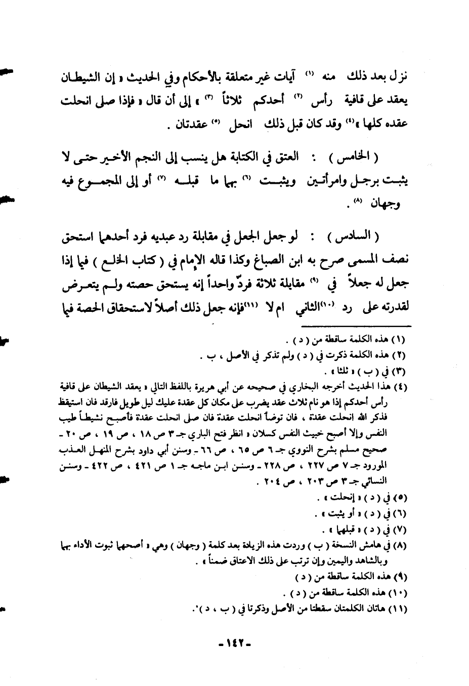 نَزَلَ بَعْدَ ذَلِكَ مِنْهُ آيَاتٌ غَيْرُ مُتَعَلِّقَةٍ بِالْأَحْكَامِ وَفِي الْحَدِيثِ «إنَّ الشَّيْطَانَ يَعْقِدُ عَلَى قَافِيَةِ رَأْسِ أَحَدِكُمْ ثَلَاثًا» إلَى أَنْ قَالَ «فَإِذَا صَلَّى انْحَلَّتْ عُقَدُهُ كُلُّهَا» وَقَدْ كَانَ قَبْلَ ذَلِكَ انْحَلَّ عُقْدَتَانِ.