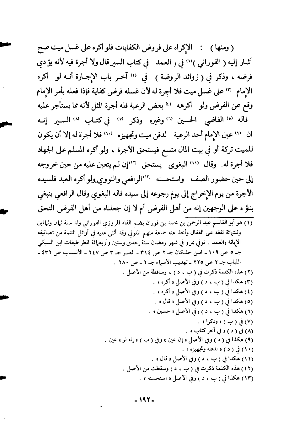 (وَمِنْهَا) : الْإِكْرَاهُ عَلَى فَرَوْضِ الْكِفَايَاتِ فَلَوْ أُكْرِهْ عَلَى غُسْلِ مَيِّتٍ صَحَّ أَشَارَ إلَيْهِ (الْفُورَانِيُّ) فِي الْعَمْدِ فِي كِتَابِ السِّيَرِ قَالَ وَلَا أُجْرَةَ فِيهِ لِأَنَّهُ يُؤَدِّي فَرْضَهُ، وَذَكَرَ فِي (زَوَائِدِ الرَّوْضَةِ) فِي آخِرِ بَابِ الْإِجَارَةِ أَنَّهُ لَوْ أَكْرَهَ الْإِمَامُ عَلَى غُسْلِ مَيِّتٍ فَلَا أُجْرَةَ لَهُ لِأَنَّ غُسْلَهُ فَرْضُ كِفَايَةٍ فَإِذَا فَعَلَهُ بِأَمْرِ الْإِمَامِ وَقَعَ عَنْ الْفَرْضِ وَلَوْ أَكْرَهَهُ بَعْضُ الرَّعِيَّةِ فَلَهُ أُجْرَةَ الْمِثْلِ لِأَنَّهُ مِمَّا يُسْتَأْجَرُ عَلَيْهِ قَالَهُ الْقَاضِي الْحُسَيْنُ وَغَيْرُهُ وَذَكَرَ فِي كِتَابِ السِّيَرِ أَنَّهُ إنْ عَيَّنَ الْإِمَامُ أَحَدَ الرَّعِيَّةِ لِدَفْنِ مَيِّتٍ وَتَجْهِيزِهِ فَلَا أُجْرَةَ لَهُ إلَّا أَنْ يَكُونَ لِلْمَيِّتِ تَرِكَةٌ أَوْ فِي بَيْتِ الْمَالِ مُتَّسَعٌ فَيَسْتَحِقُّ الْأُجْرَةَ، وَلَوْ أُكْرِهَ الْمُسْلِمُ عَلَى الْجِهَادِ فَلَا أُجْرَةَ لَهُ. وَقَالَ الْبَغَوِيّ يَسْتَحِقُّ إنْ لَمْ يَتَعَيَّنْ عَلَيْهِ مِنْ حِينِ خُرُوجِهِ إلَى حِينِ حُضُورِ الصَّفِّ وَاسْتَحْسَنَهُ الرَّافِعِيُّ وَالنَّوَوِيُّ.