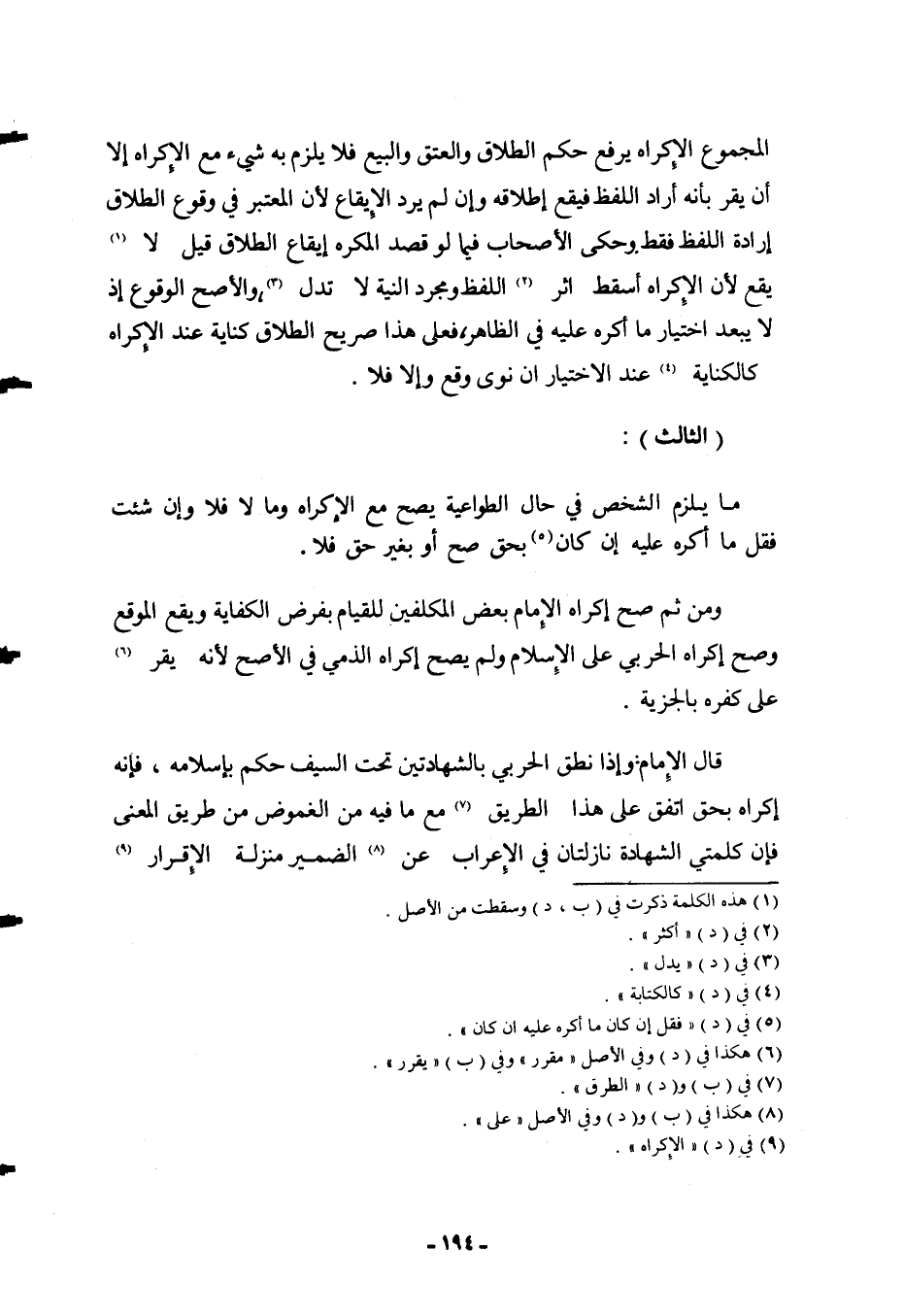 (الثَّالِثُ) : مَا يَلْزَمُ الشَّخْصَ فِي حَالِ الطَّوَاعِيَةِ يَصِحُّ مَعَ الْإِكْرَاهِ وَمَا لَا فَلَا وَإِنْ شِئْت فَقُلْ مَا أُكْرِهَ عَلَيْهِ إنْ كَانَ بِحَقٍّ صَحَّ أَوْ بِغَيْرِ حَقٍّ فَلَا.
