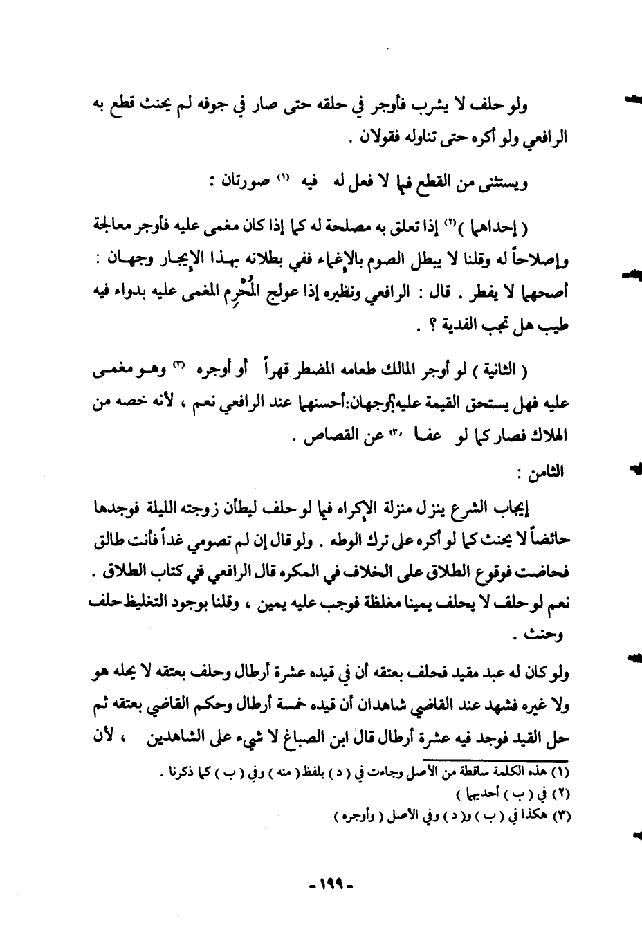 وَلَوْ كَانَ لَهُ عَبْدٌ مُقَيَّدٌ فَحَلَفَ بِعِتْقِهِ أَنَّ فِي قَيْدِهِ عَشَرَةَ أَرْطَالٍ وَحَلَفَ بِعِتْقِهِ لَا يَحُلُّهُ هُوَ وَلَا غَيْرُهُ فَشَهِدَ عِنْدَ الْقَاضِي شَاهِدَانِ أَنَّ قَيْدَهُ خَمْسَةُ أَرْطَالٍ وَحَكَمَ الْقَاضِي بِعِتْقِهِ ثُمَّ حَلَّ الْقَيْدَ فَوَجَدَ فِيهِ عَشَرَةَ أَرْطَالٍ قَالَ ابْنُ الصَّبَّاغِ لَا شَيْءَ عَلَى الشَّاهِدَيْنِ، لِأَنَّ