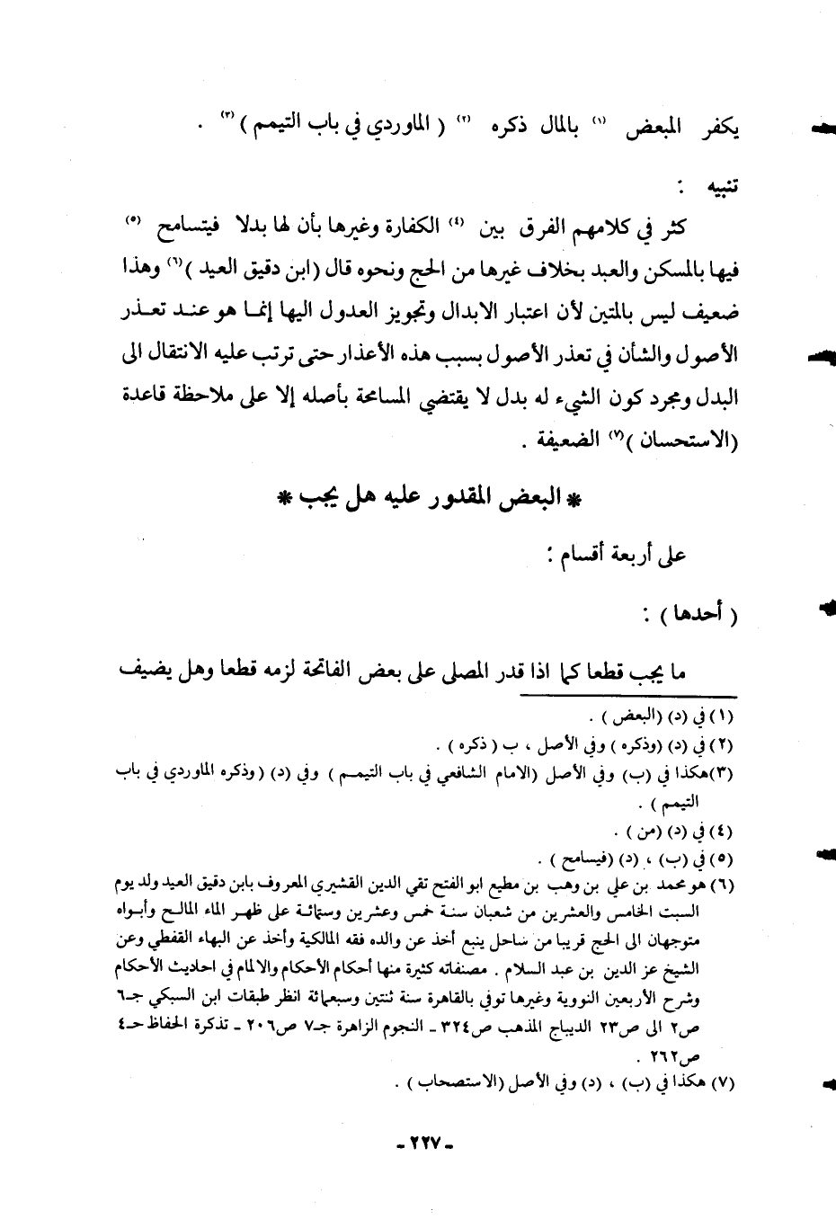 ُ عَلَى أَرْبَعَةِ أَقْسَامٍ: (أَحَدُهَا) مَا يَجِبُ قَطْعًا كَمَا إذَا قَدَرَ الْمُصَلِّي عَلَى بَعْضِ الْفَاتِحَةِ لَزِمَهُ قَطْعًا وَهَلْ يُضِيفُ
