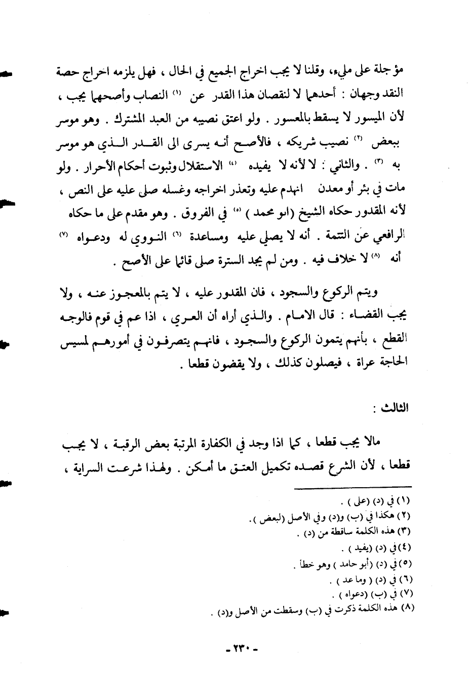مَا لَا يَجِبُ قَطْعًا، كَمَا إذَا وَجَدَ فِي الْكَفَّارَةِ الْمُرَتَّبَةِ بَعْضَ الرَّقَبَةِ، لَا يَجِبُ قَطْعًا؛ لِأَنَّ الشَّرْعَ قَصْدُهُ تَكْمِيلَ الْعِتْقِ مَا أَمْكَنَ؛ وَلِهَذَا شُرِعَتْ السِّرَايَةُ،