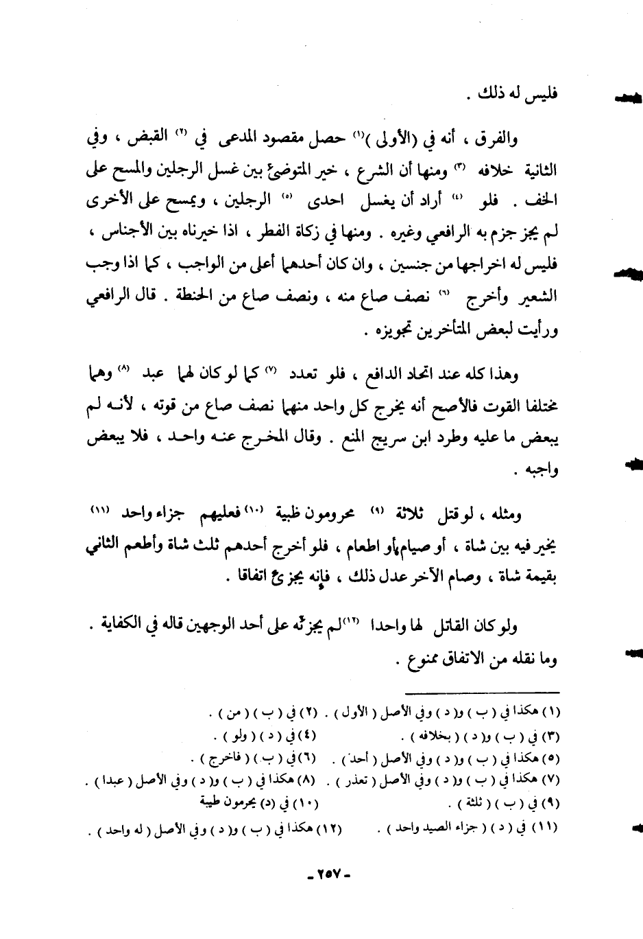 وَالْفَرْقُ، أَنَّهُ فِي (الْأُولَى) حَصَلَ مَقْصُودُ الْمُدَّعِي فِي الْقَبْضِ، وَفِي الثَّانِيَةِ خِلَافُهُ وَمِنْهَا أَنَّ الشَّرْعَ، خَيَّرَ الْمُتَوَضِّئَ بَيْنَ غَسْلِ الرِّجْلَيْنِ وَالْمَسْحِ عَلَى الْخُفِّ، فَلَوْ أَرَادَ أَنْ يَغْسِلَ إحْدَى الرِّجْلَيْنِ، وَيَمْسَحَ عَلَى الْأُخْرَى لَمْ يُجْزِ، جَزَمَ بِهِ الرَّافِعِيُّ وَغَيْرُهُ.