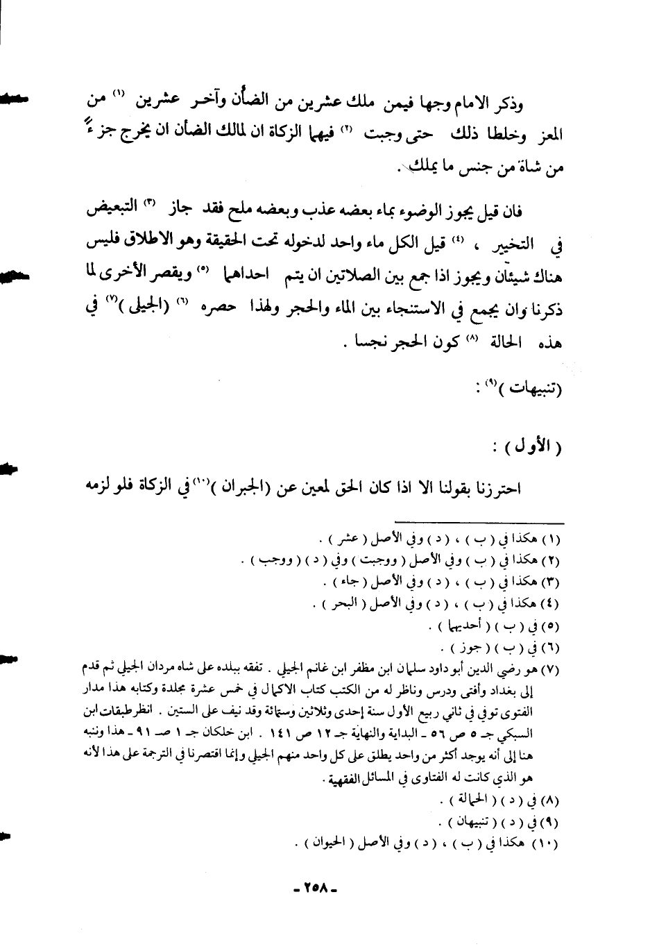 وَذَكَرَ الْإِمَامُ وَجْهًا فِيمَنْ مَلَكَ عِشْرِينَ مِنْ الضَّأْنِ وَآخَرَ عِشْرِينَ مِنْ الْمَعْزِ وَخَلَطَا ذَلِكَ حَتَّى وَجَبَتْ فِيهِمَا الزَّكَاةُ أَنَّ لِمَالِك الضَّأْنِ أَنْ يُخْرِجَ جُزْءًا مِنْ شَاةٍ مِنْ جِنْسِ مَا يَمْلِكُ، فَإِنْ قِيلَ: يَجُوزُ الْوُضُوءُ بِمَاءٍ بَعْضُهُ عَذْبٌ وَبَعْضُهُ مِلْحٌ فَقَدْ جَازَ التَّبْعِيضُ فِي التَّخْيِيرِ، قِيلَ الْكُلُّ مَاءٌ وَاحِدٌ لِدُخُولِهِ تَحْتَ الْحَقِيقَةِ وَهُوَ الْإِطْلَاقُ فَلَيْسَ هُنَاكَ شَيْئَانِ وَيَجُوزُ إذَا جَمَعَ بَيْنَ الصَّلَاتَيْنِ أَنْ يُتِمَّ إحْدَاهُمَا وَيُقْصِرَ الْأُخْرَى لِمَا ذَكَرْنَا وَأَنْ يَجْمَعَ فِي الِاسْتِنْجَاءِ بَيْنَ الْمَاءِ وَالْحَجَرِ، وَلِهَذَا حَصَرَهُ (الْجِيلِيُّ) فِي هَذِهِ الْحَالَةِ كَوْنَ الْحَجَرِ نَجِسًا.