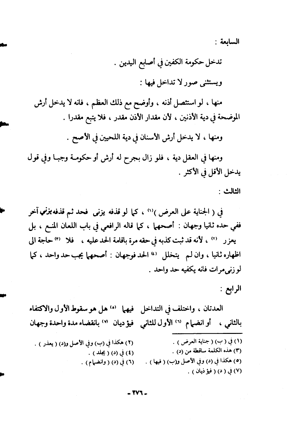 السَّابِعَةُ: تَدْخُلُ حُكُومَةُ الْكَفَّيْنِ فِي أَصَابِعِ الْيَدَيْنِ، وَيُسْتَثْنَى صُوَرٌ لَا تَدَاخُلَ فِيهَا مِنْهَا، لَوْ اسْتَأْصَلَ أُذُنَهُ، وَأَوْضَحَ مَعَ ذَلِكَ الْعَظْمَ، فَإِنَّهُ لَا يَدْخُلُ أَرْشُ الْمُوضِحَةِ فِي دِيَةِ الْأُذُنَيْنِ؛ لِأَنَّ مِقْدَارَ الْأُذُنِ مُقَدَّرٌ، فَلَا يَتْبَعُ مُقَدَّرًا.