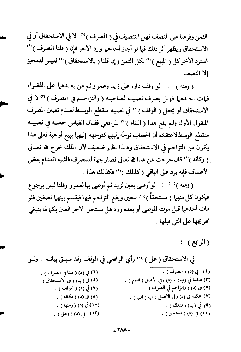 (الرَّابِعُ) : فِي الِاسْتِحْقَاقِ (عَلَى) رَأْي الرَّافِعِيِّ فِي الْوَقْفِ وَقَدْ سَبَقَ بَيَانُهُ، وَلَوْ