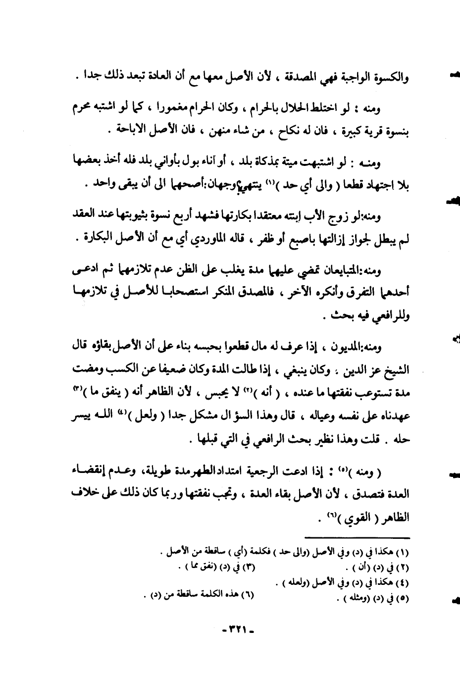 وَمِنْهُ: الْمَدْيُونُ، إذَا عُرِفَ لَهُ مَالٌ قَطَعُوا بِحَبْسِهِ بِنَاءً عَلَى أَنَّ الْأَصْلَ بَقَاؤُهُ قَالَ الشَّيْخُ عِزُّ الدِّينِ: وَكَانَ يَنْبَغِي، إذَا طَالَتْ الْمُدَّةُ، وَكَانَ ضَعِيفًا عَنْ الْكَسْبِ وَمَضَتْ مُدَّةٌ تَسْتَوْعِبُ نَفَقَتُهَا مَا عِنْدَهُ، (أَنَّهُ) لَا يُحْبَسُ؛ لِأَنَّ الظَّاهِرَ أَنَّهُ (يُنْفِقُ مَا) عَهِدْنَاهُ عَلَى نَفْسِهِ وَعِيَالِهِ، قَالَ: وَهَذَا السُّؤَالُ مُشْكِلٌ جِدًّا (وَلَعَلَّ) اللَّهَ يُيَسِّرُ حَلَّهُ. قُلْت: وَهَذَا نَظِيرُ بَحْثِ الرَّافِعِيِّ فِي الَّتِي قَبْلَهَا.