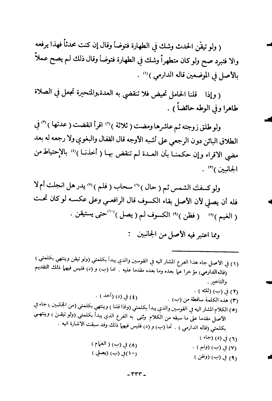 وَمِمَّا اُعْتُبِرَ فِيهِ الْأَصْلُ مِنْ الْجَانِبَيْنِ: