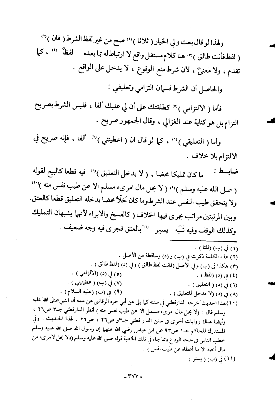 وَالْحَاصِلُ أَنَّ الشَّرْطَ قِسْمَانِ الْتِزَامِيٌّ وَتَعْلِيقِيٌّ: فَأَمَّا (الِالْتِزَامِيُّ) كَطَلَّقْتُكِ عَلَى أَنَّ لِي عَلَيْكِ أَلْفًا، فَلَيْسَ الشَّرْطُ بِصَرِيحِ الْتِزَامٍ بَلْ هُوَ كِنَايَةٌ عِنْدَ الْغَزَالِيِّ، وَقَالَ الْجُمْهُورُ صَرِيحٌ.