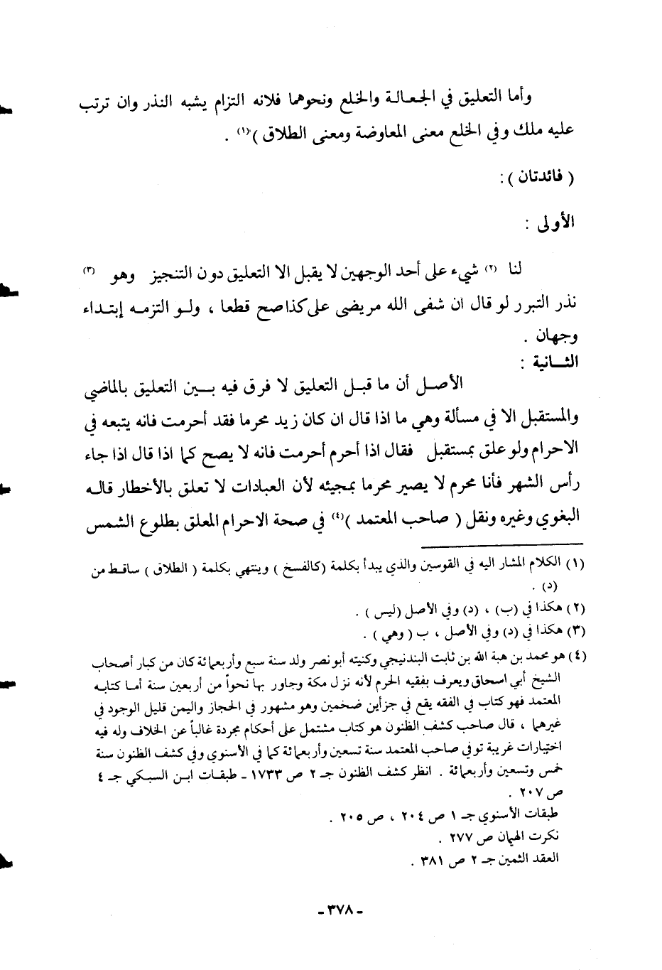 الثَّانِيَةُ: الْأَصْلُ أَنَّ مَا قَبْلَ التَّعْلِيقِ لَا فَرْقَ فِيهِ بَيْنَ التَّعْلِيقِ بِالْمَاضِي وَالْمُسْتَقْبَلِ إلَّا فِي مَسْأَلَةٍ وَهِيَ مَا إذَا قَالَ إنْ كَانَ زَيْدٌ مُحْرِمًا فَقَدْ أَحْرَمْت فَإِنَّهُ يَتْبَعُهُ فِي الْإِحْرَامِ وَلَوْ عَلَّقَ بِمُسْتَقْبَلٍ فَقَالَ إذَا أَحْرَمَ أَحْرَمْت فَإِنَّهُ لَا يَصِحُّ كَمَا إذَا قَالَ إذَا جَاءَ رَأْسُ الشَّهْرِ فَأَنَا مُحْرِمٌ لَا يَصِيرُ مُحْرِمًا بِمَجِيئِهِ لِأَنَّ الْعِبَادَاتِ لَا تَعْلَقُ بِالْأَخْطَارِ قَالَهُ الْبَغَوِيّ وَغَيْرُهُ وَنَقَلَ (صَاحِبُ الْمُعْتَمَدِ) فِي صِحَّةِ الْإِحْرَامِ الْمُعَلَّقِ بِطُلُوعِ الشَّمْسِ