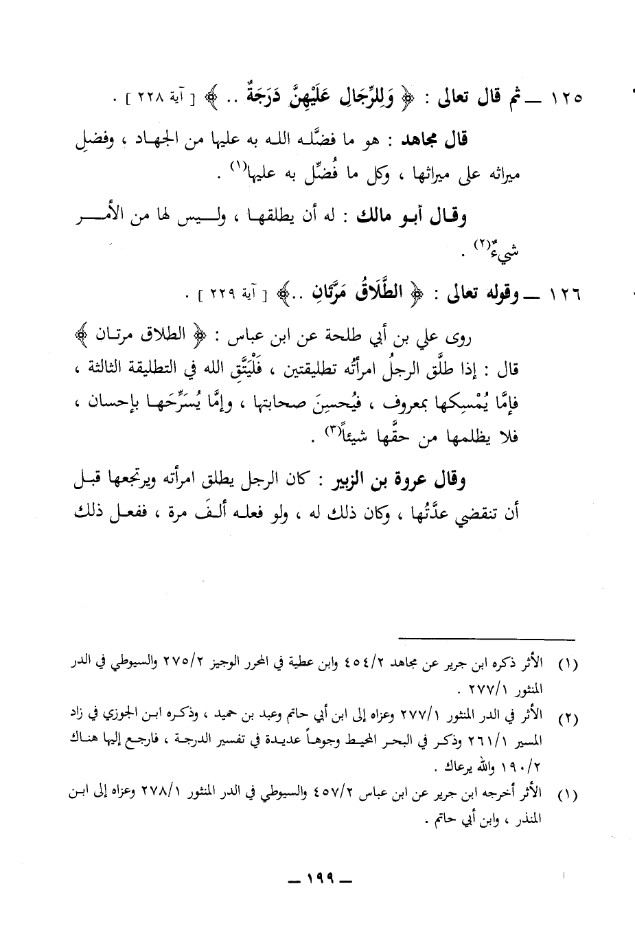 125 - ثم قال تعالى وللرجال عليهن درجة قال مجاهد هو ما فضل الله به عليها من الجهاد وفضل ميراثه على ميراثها وكل ما فضل به عليها