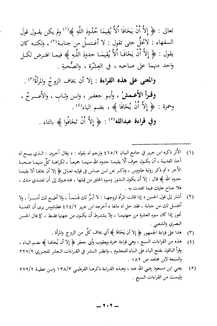تعالى الا ان يخافا الا يقيما حدود الله ولم يكن يقول قول السفهاء لا تحل حتى تقول لا اغتسل من جانبة أو ولكنه كان يقول الا ان يخافا الا يقيما حدود الله فيما افترض لكل واحد منهما على صاحبه في العشرة والصحبة والمعنى على هذه القراءة الا ان يخاف الزوج والمرأة وقرأ الأعمش وأبو جعفر وابن وثاب والأعرج وحمزة إلا أن بخافا) بضم الياء وفي قراءة عبد الله الا ان تخافوا بالتاء