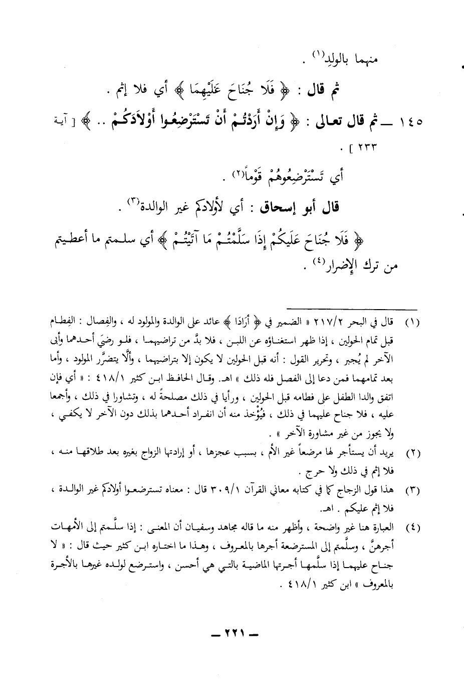 منهما بالولد ثم قال فلا جناح عليهما أي فلا اثم 145 - ثم قال تعالى وان اردتم ان تسترضعوا اولادكم