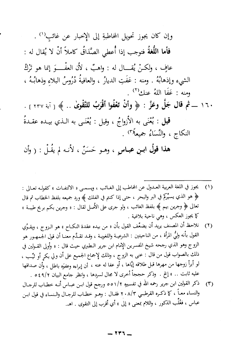 160 - ثم قال جل وعز وان تعفوا اقرب للتقوى قيل يعنى به الأزواج وقيل يعنى به الذي بيده عقدة النكاح والنساء جميعا هذا قول ابن عباس وهو حسن لانه يقل وان