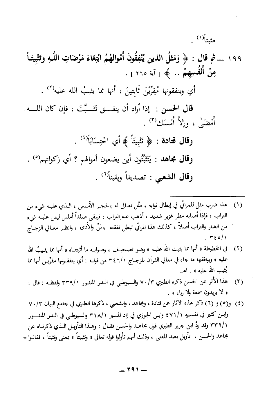 مثبتا 199 - ثم قال ومثل الذين ينفقون أموالهم ابتغاء مرضات الله وتثبيتا من انفسهم