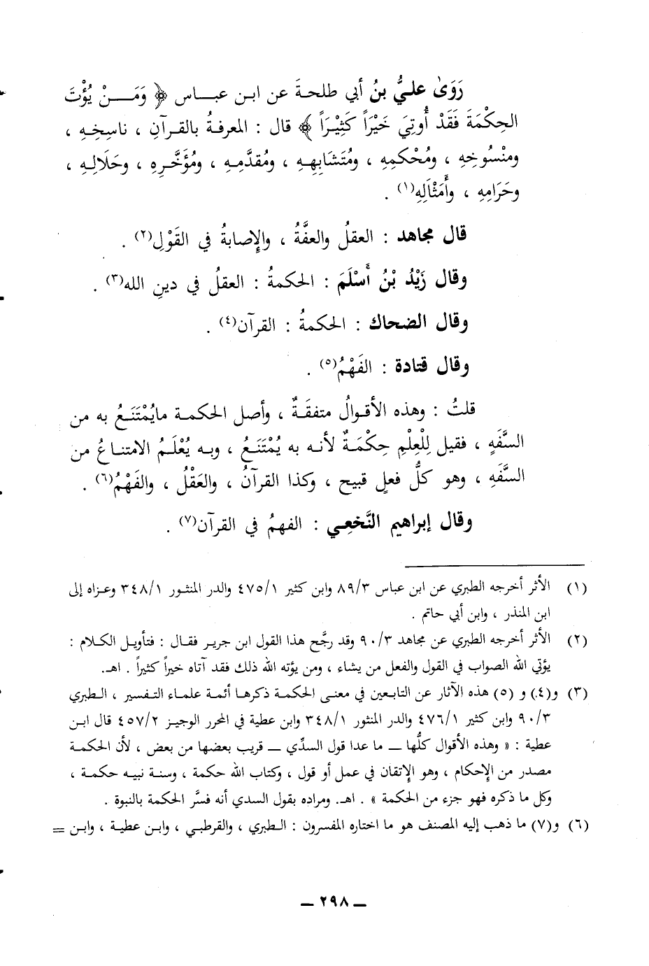 روى علي بن ابي طلحة عن ابن عباس ومن يؤت الحكمة فقد أوتي خيرا كثيرا قال المعرفة بالقرآن ناسخة ومنسوخة ومحكمة ومتشابهة ومقدمة ومؤخرة وحلاله وحرامه وأمثاله قال مجاهد العقل والعفة والاصابة في القول وقال زيد بن أسلم الحكمة العقل في دين الله وقال الضحاك الحكمة القرآن وقال قتادة الفهم قلت وهذه الاقوال متفقة وأصل الحكمة ما يمتنع به من السفه فقيل للعلم حكمة لانه به يمتنع وبه يعلم الامتناع من السفه وهو كل فعل قبيح وكذا القرآن والعقل والفهم وقال ابراهيم النخعي الفهم في القرآن