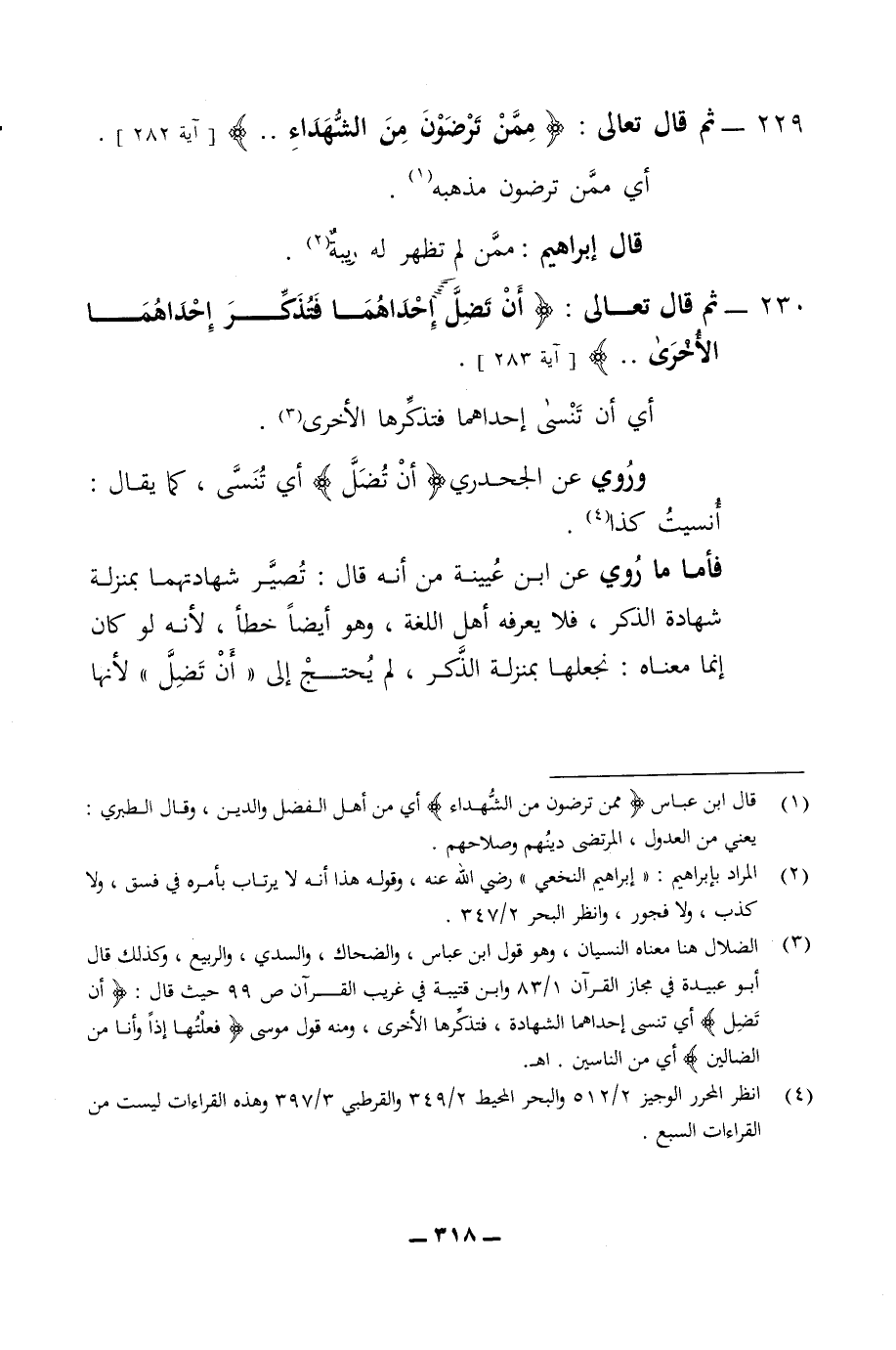 229 - ثم قال تعالى ممن ترضون من الشهداء أي ممن ترضون مذهبه قال ابراهيم ممن لم تظهر له ريبة 230 - ثم قال تعالى ان تضل احداهما فتذكر احداهما الاخرى أي أن تنسى احدهما فتذكرها الاخرى وروي عن الجحدري ان تضل أي تنسى كما يقال أنسيت كذا فأما ما روي عن ابن عيينة من انه قال تصير شهادتهما بمنزلة